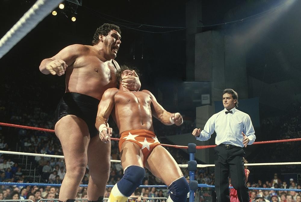 巨人安德烈的最重的时候达到了520磅,既然有如此大的体重,谁要是能抱起他那就算是出名了。在摔角狂热3上胡克·霍根抱摔了安德烈,向全世界展现了自己的力量,安德烈虽然是背摔的那一个,但也足够伟大。