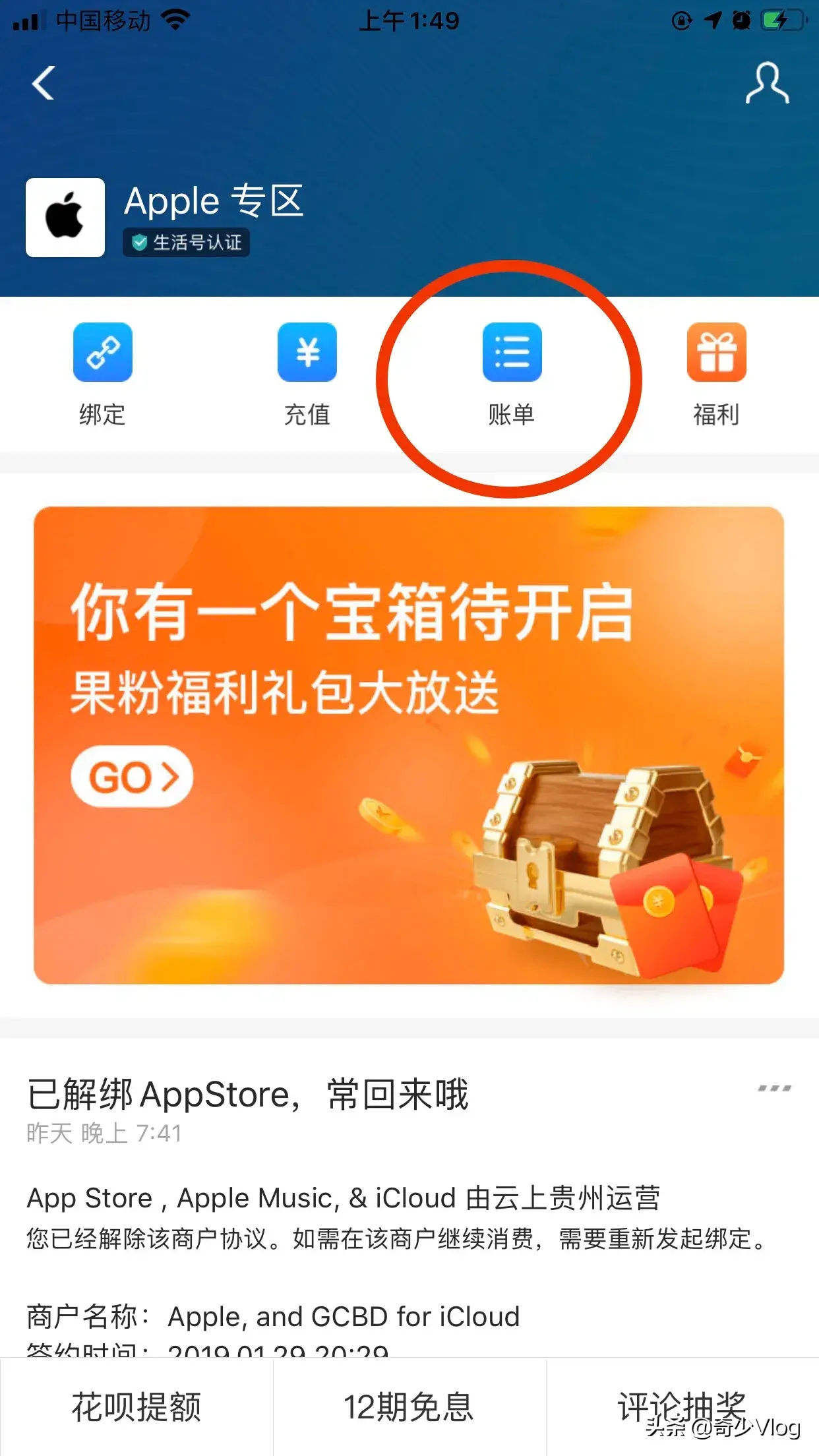 2.选择"账单"。