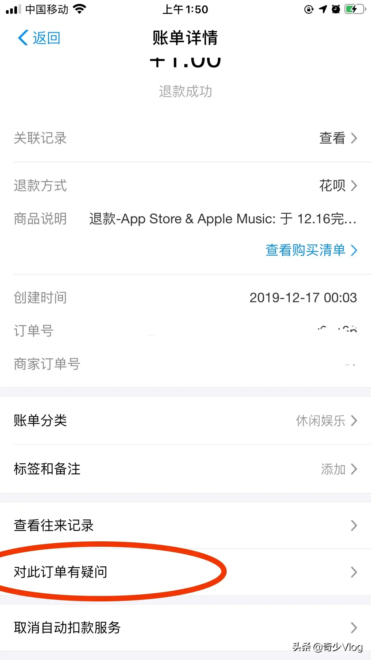 事情既然发生了,那么就要走维权道路吧,所以马上就申请退款,不过本来就一块钱的事,也不想打电话去苹果400,找呀找的,终于退到款了,苹果发邮件出来说明会原路退款回来,过个十几分钟,我支付宝的钱也退回来了。好开心!哈哈