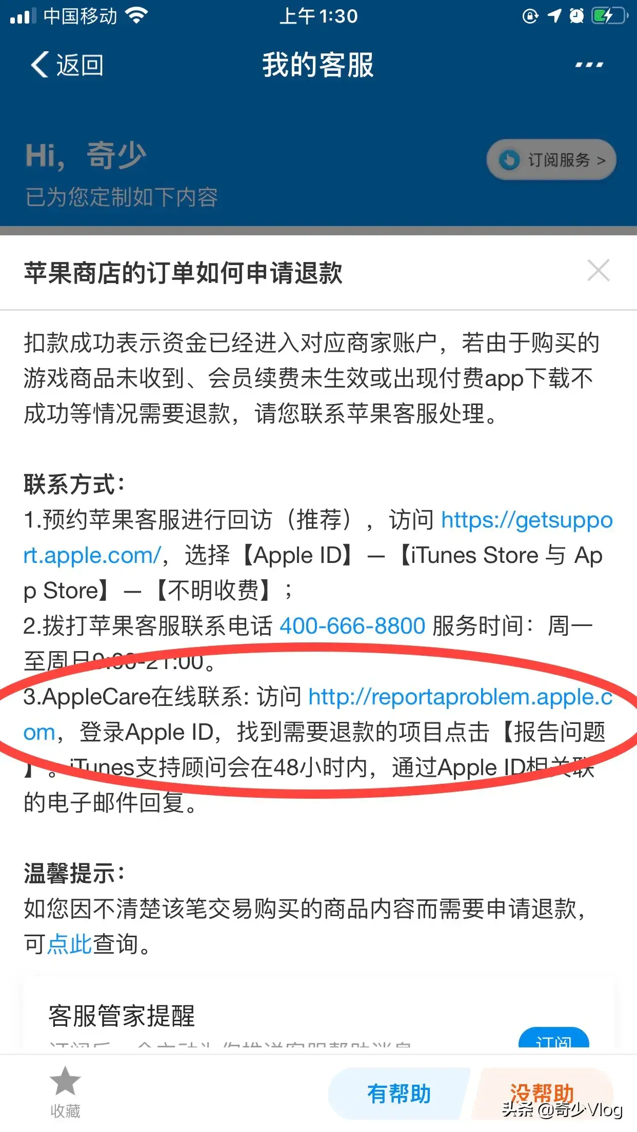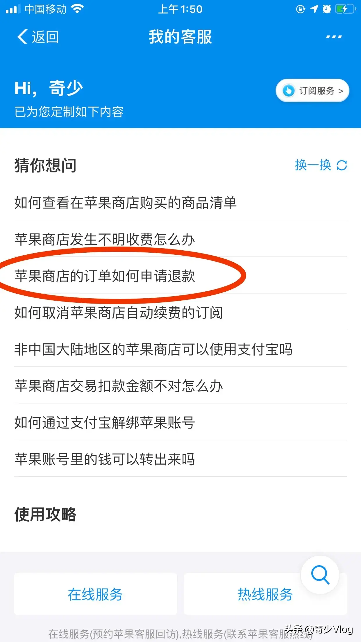 5.找到"苹果商店的订单如何退款"。