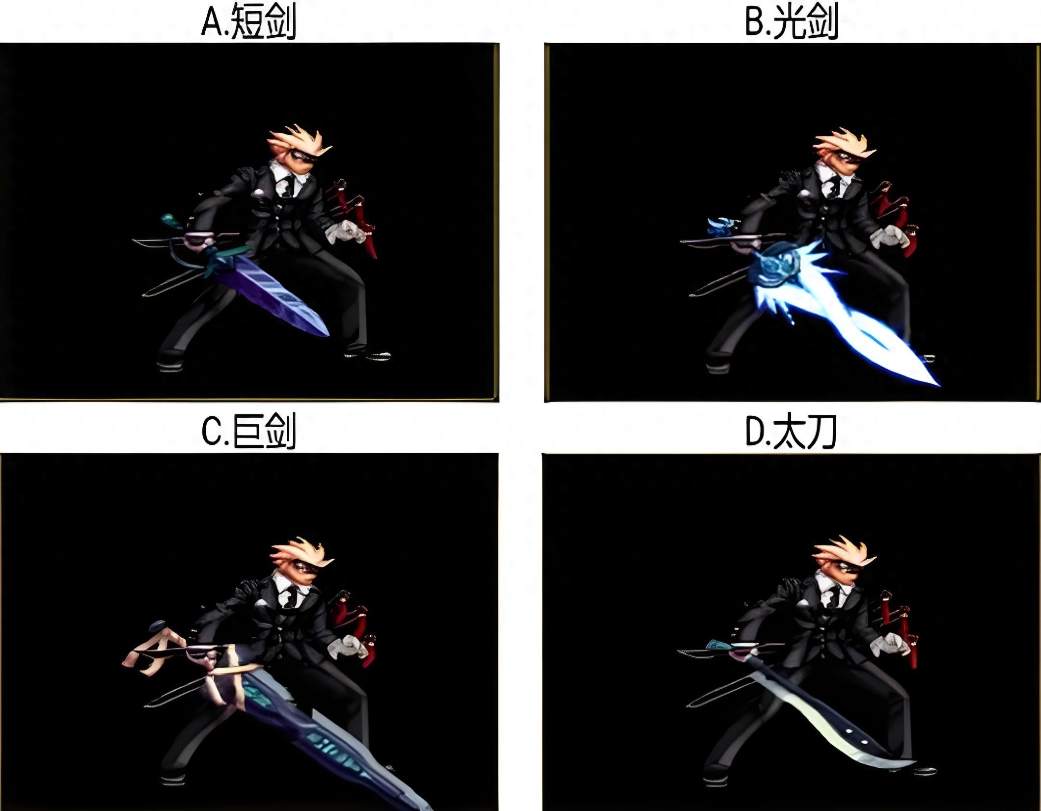 鬼剑士的武器分为巨剑、短剑、太刀、光剑和钝器