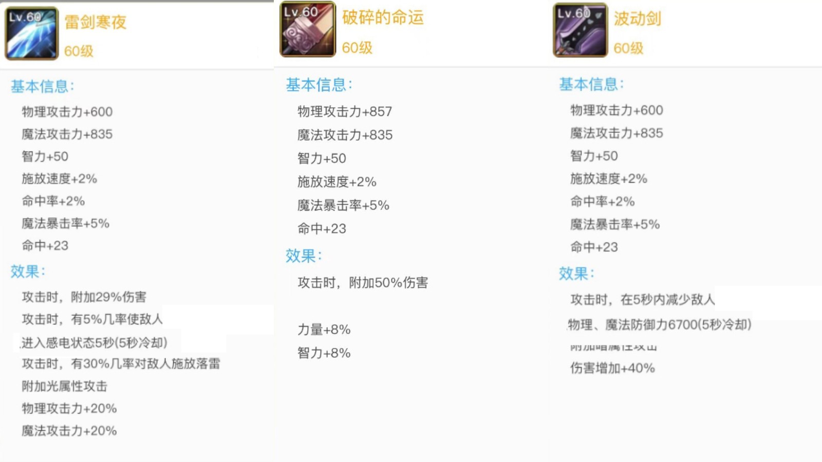 60版本ss短剑同样有三把, 其中雷剑寒夜适合阿修罗,波动剑适合鬼泣,破碎的命运夸张的白字伤害适合任何一个职业。