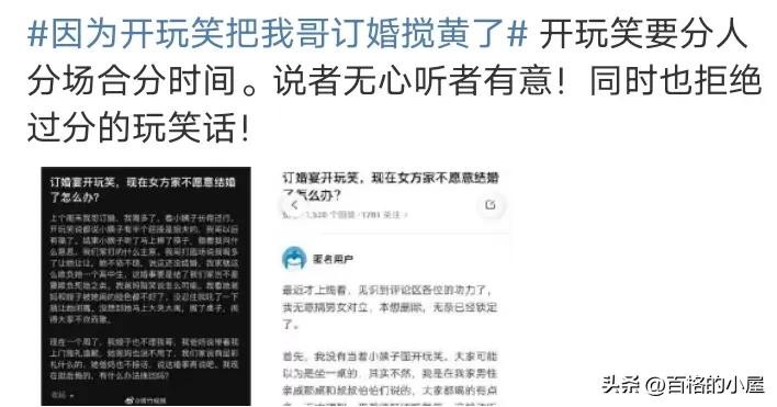 起初,这本是男孩一个求助帖,他表示:订婚宴开玩笑,现在女方家不愿意结婚了怎么办?