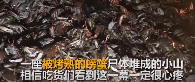 待消防车到达现场将火势扑灭后,黄警官看到了震惊的一幕:被完全烤熟的石闸蟹堆成小山,冒着一股股热气。