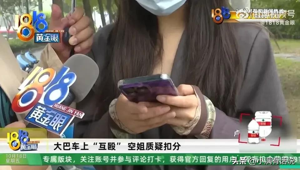 这名空姐在一频中说:当时我们同处一辆大巴上,我车位旁边有异物,乘务长要求我清理,我对这个完全没有异议!