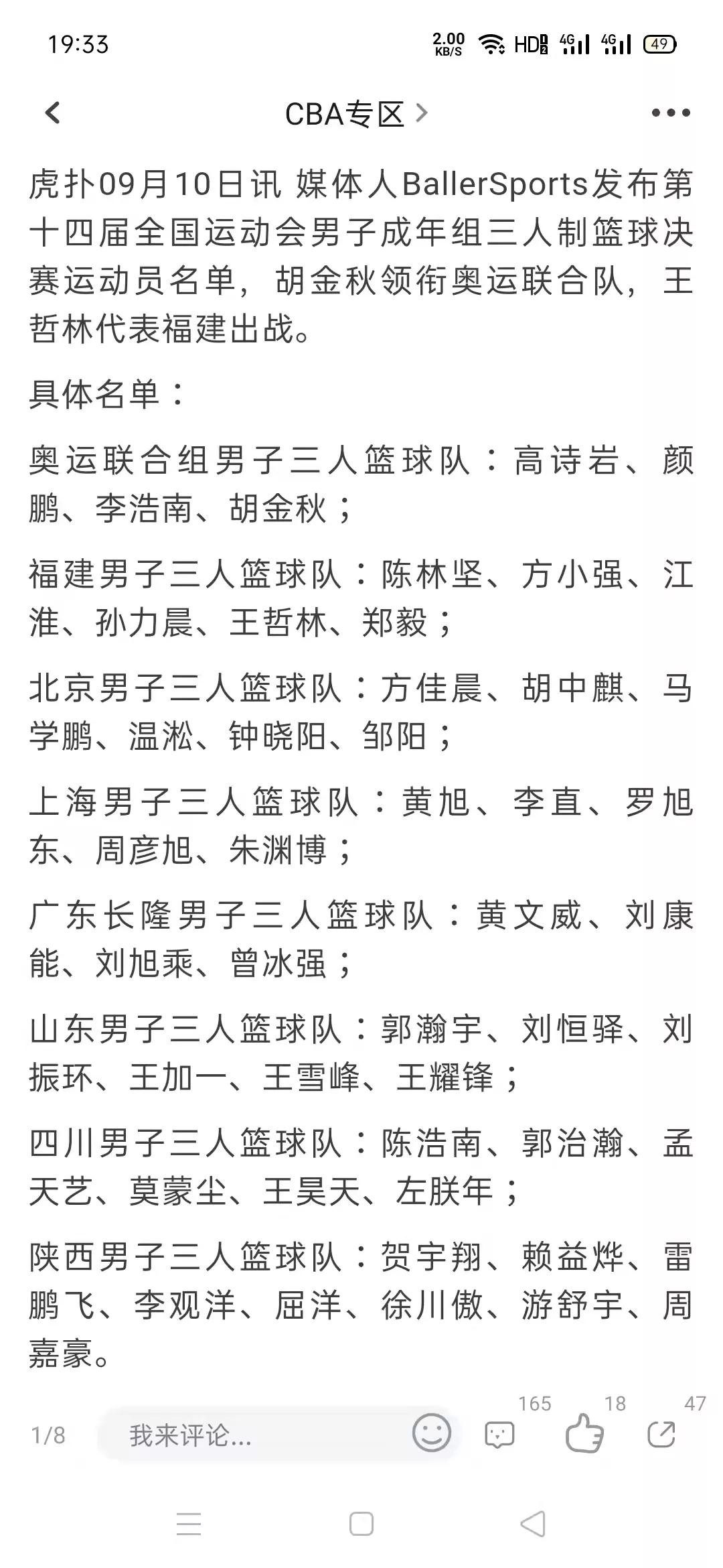 众所周知,全运会的三人篮球赛,很多球队都包含着职业球员,实力不可小觑。就拿今年的全运会来说,还有拥有胡金秋这类国手级别的奥运联合队参赛,福建三人篮球队也有王哲林、陈林坚等一众球星加入。当然,他们在全运结束后不可能继续征战三人篮球职业赛,肯定会返回俱乐部继续参加新赛季的CBA联赛。
