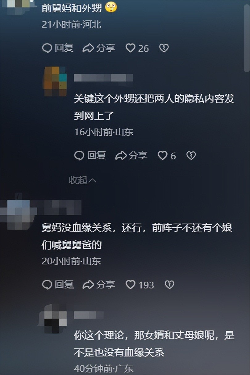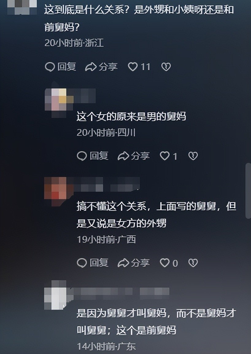 网友说:这到底是什么关系?是外甥和小姨呀还是和前舅妈?