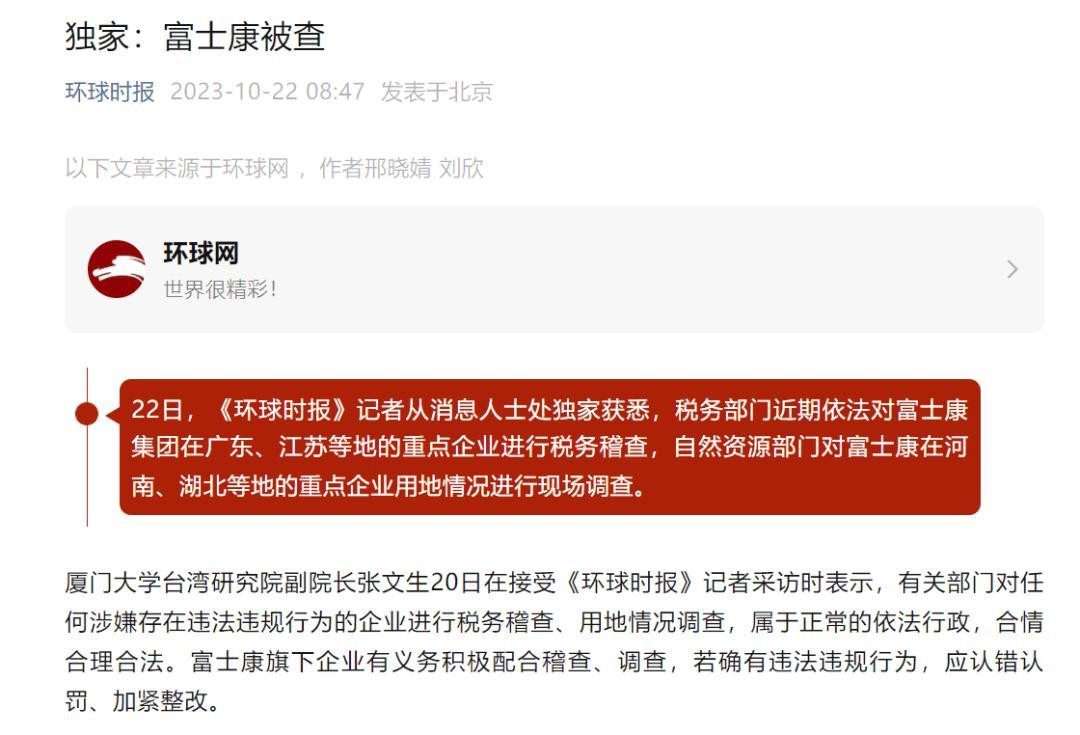 对于富士康被立案调查一事,不少网友纷纷感慨道,“郭台铭时代落幕,谁也没想到会这么快,来及不向老郭说再见!”无论未来富士康会不会将工厂全部搬离大陆,郭台铭时代是否落幕,我们都不应该将国家的发展寄托在富士康的身上,只能依靠我们自己,只有脚踏实地的搞技术,大力支持比亚迪等国内企业的发展,我们就一定能实现真正意义上的“独立”,不再依赖任何人,不再看任何人的脸色!同意的请点赞!