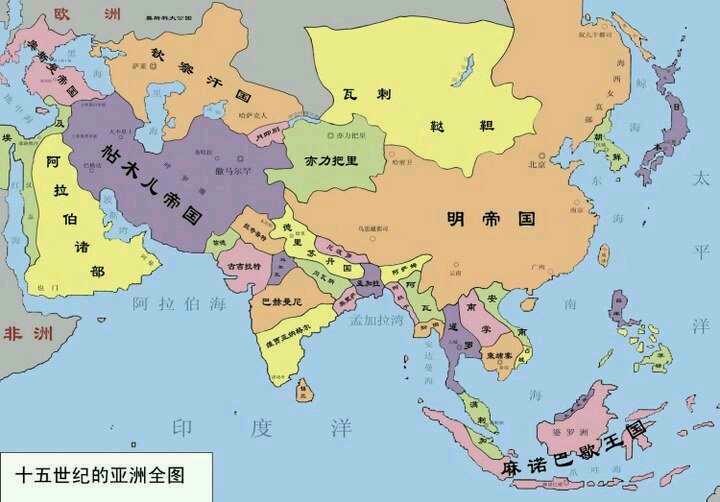 帖木儿当时进攻明朝的路线:1当时的亦里八应该是新疆一带,原察合王国。2.另一路是从印度南迂回,明朝。其实,看他们的行军路线来看可以看出帖木儿确实很狡猾。当时朱棣也快速做出了反应,派郑和去支援印度,从军事的角度看,如果一直骑兵突然出现在敌人面前,对其心理的震慑是非常大的。陆路被敌人侦查得知的可能性非常大,而海上增加军事行动的成功突然性是非常大的,朱棣选海战夹击到底对还是错?战争还没打响,帖木儿已经死去,所以……
