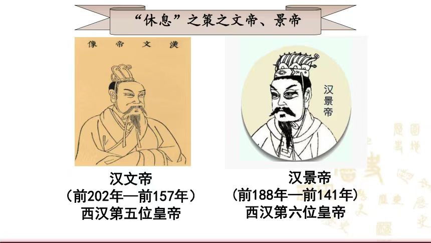 文帝刘恒与其子景帝刘启共同执政41年。他们颇具政治才能,坚持汉初确立的无为而治、与民休息的国策,使政策具有连贯性和一致性。
