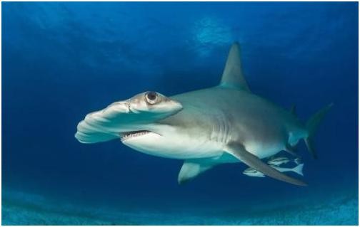 那么是不是待在锤头鲨头部中间范围的小鱼就安然无恙?不是的,鲨鱼呼吸是依靠游泳,为了活下去它们会一直游动,这要依靠尾巴左右摇摆,带动身体一起前进,在动起来且清醒的情况下,锤头鲨眼部摇晃让它避免出现视觉盲区,除了能吸附鲨鱼身上的鮣鱼,其他抱有这种想法的猎物就是自寻死路。