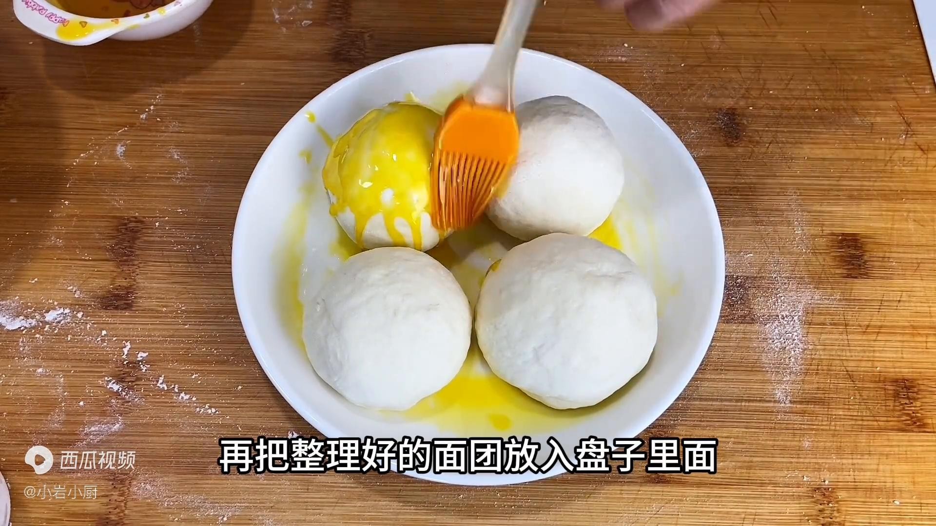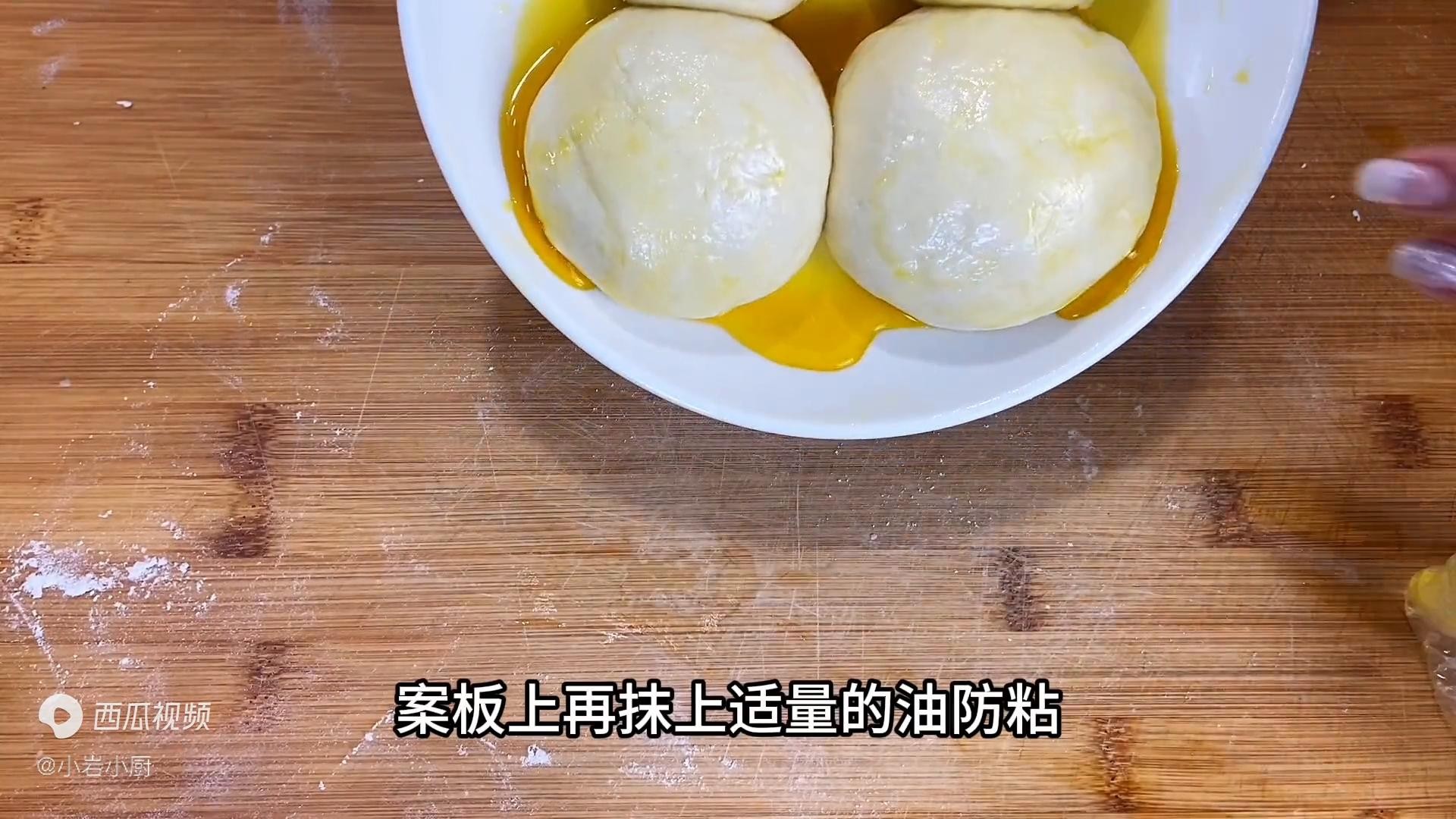 ·最后再把面团一搭满上,多揉一会,揉光滑,如果粘手可以往手上抹一点食用油。揉好之后搓成长条,分成4个大小均匀的面剂。接着把每一个小面剂稍微整理一下,整理成圆形。