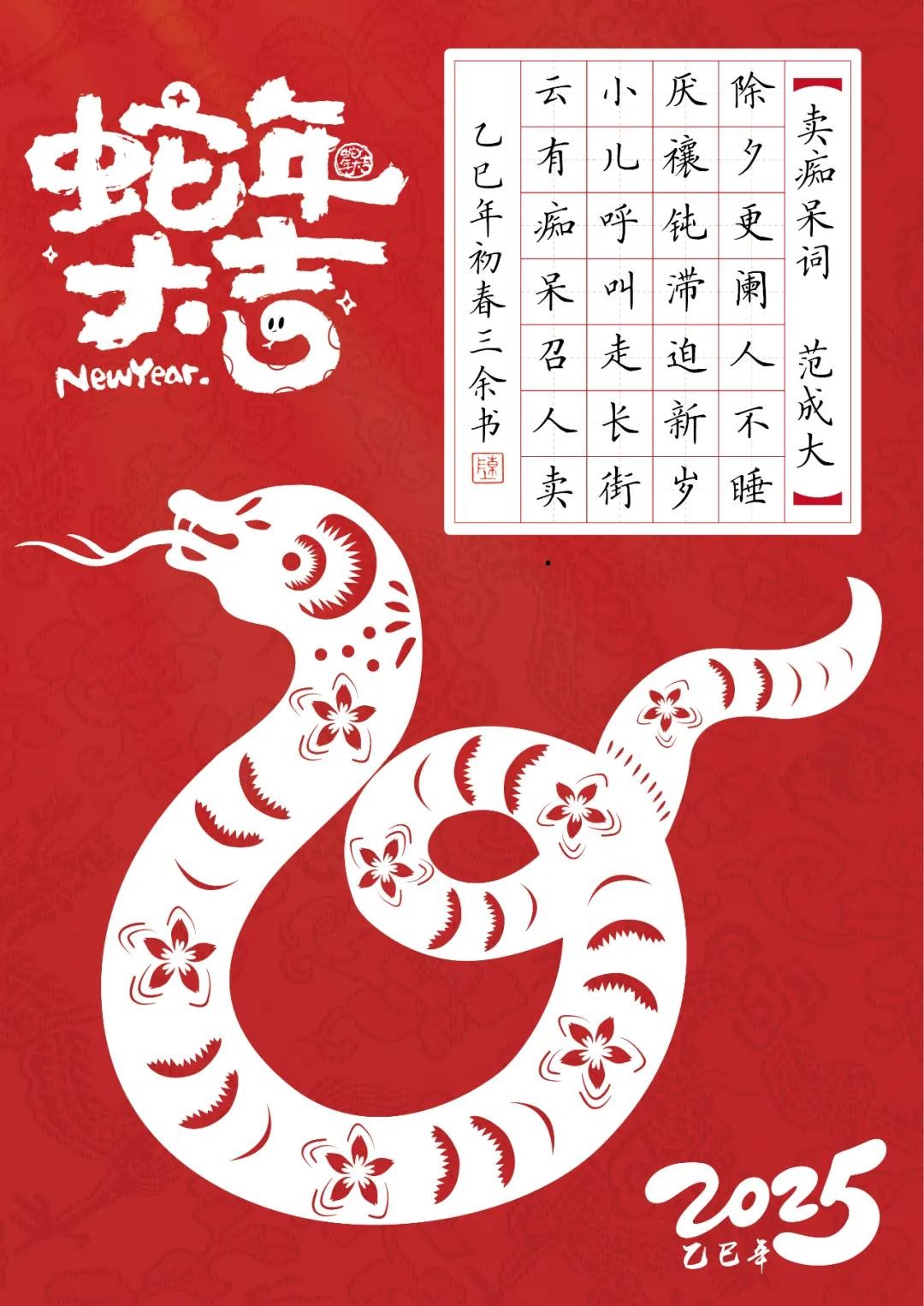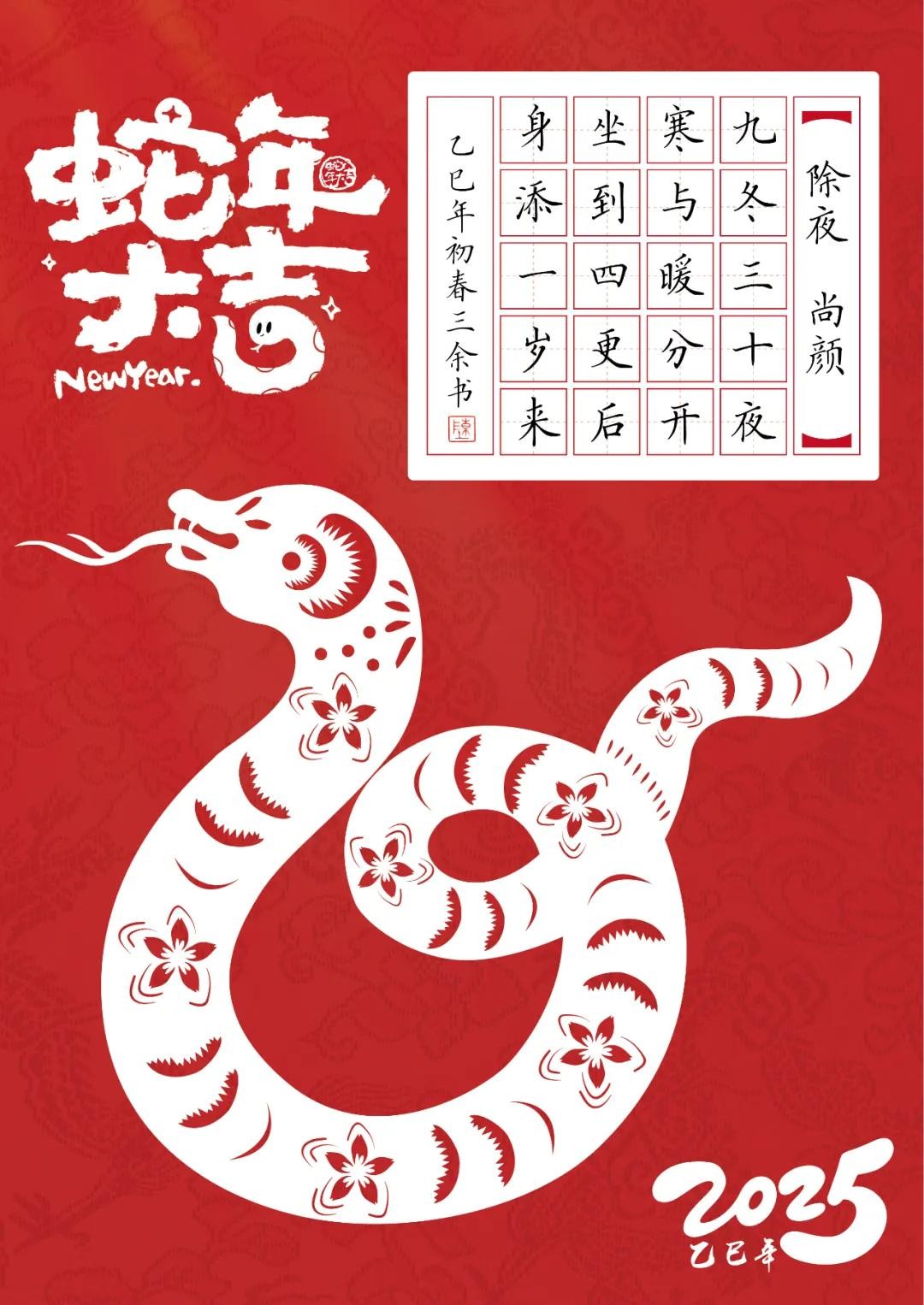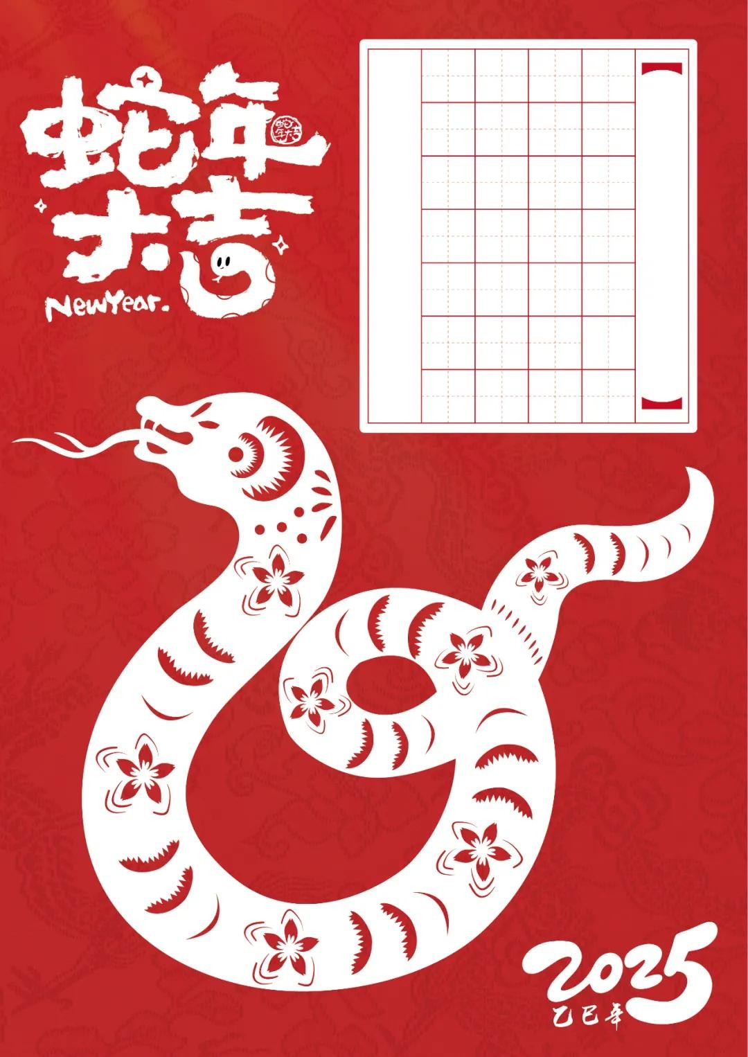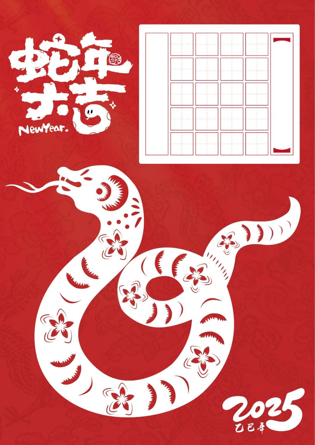 在蛇年进行书法创作,可从与 “蛇” 相关的内容、字体特点及整体布局等方面运用一些书写技巧,以更好地展现蛇年的特色与书法的美感: