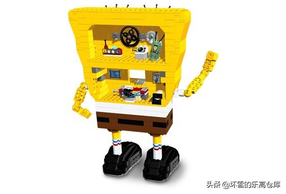 如果你以为这款海绵宝宝只是一个单纯的类雕塑产品,那就太小看乐高设计师啦!估计乐高设计师觉得海绵宝宝的脑袋太大,所以又在其脑袋里设计了两个有趣的房间。