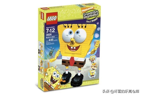 做为与海绵宝宝合作的元年,乐高在第一年推出了三款有特色的产品,分别是3825蟹堡王、3826海绵宝宝与3827比奇堡历险记。这三款产品各有特色。在当时,乐高还比较热衷于用乐高搭建类雕塑的产品,以便玩家进行收藏。3826海绵宝宝便是一款偏雕塑类的产品。