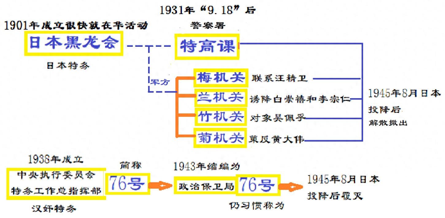借此,分日本特务组织和汉奸特务组织两条线,简要跟大家说说: