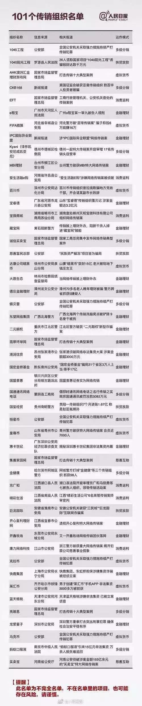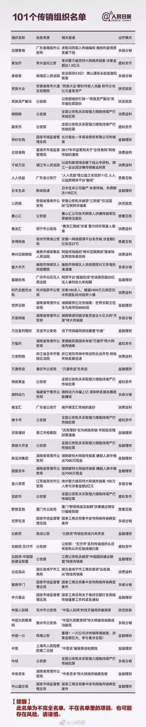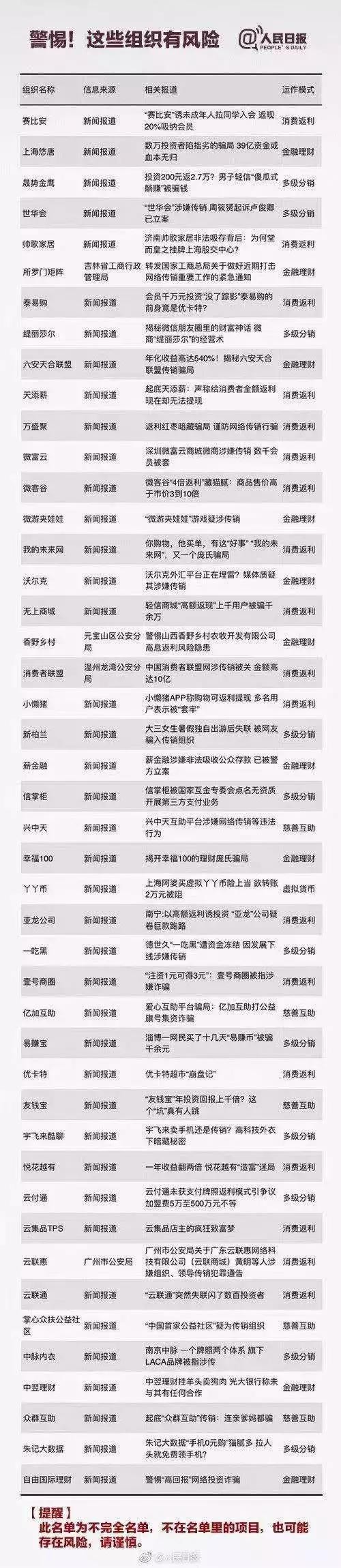 这一份涉嫌传销的组织名单