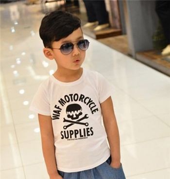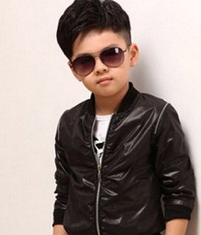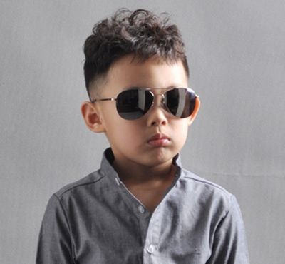卷烫发在儿童的发型中可是很时尚最新的呢,云状的短发很是有型呢,映衬出6岁小男孩一张嘟嘟的小脸来呢,而鬓角两侧的短发显得更为的可爱呢,同样是搭配上墨镜后,很有范的呢。