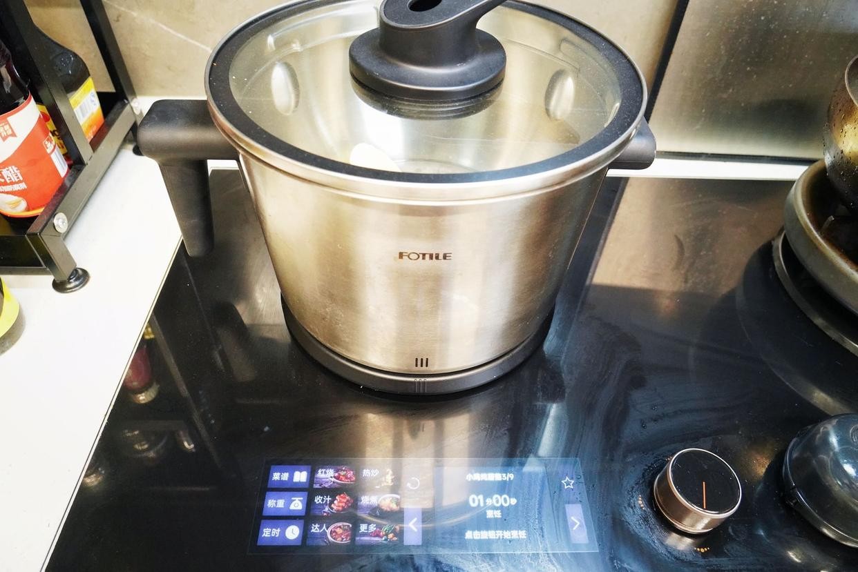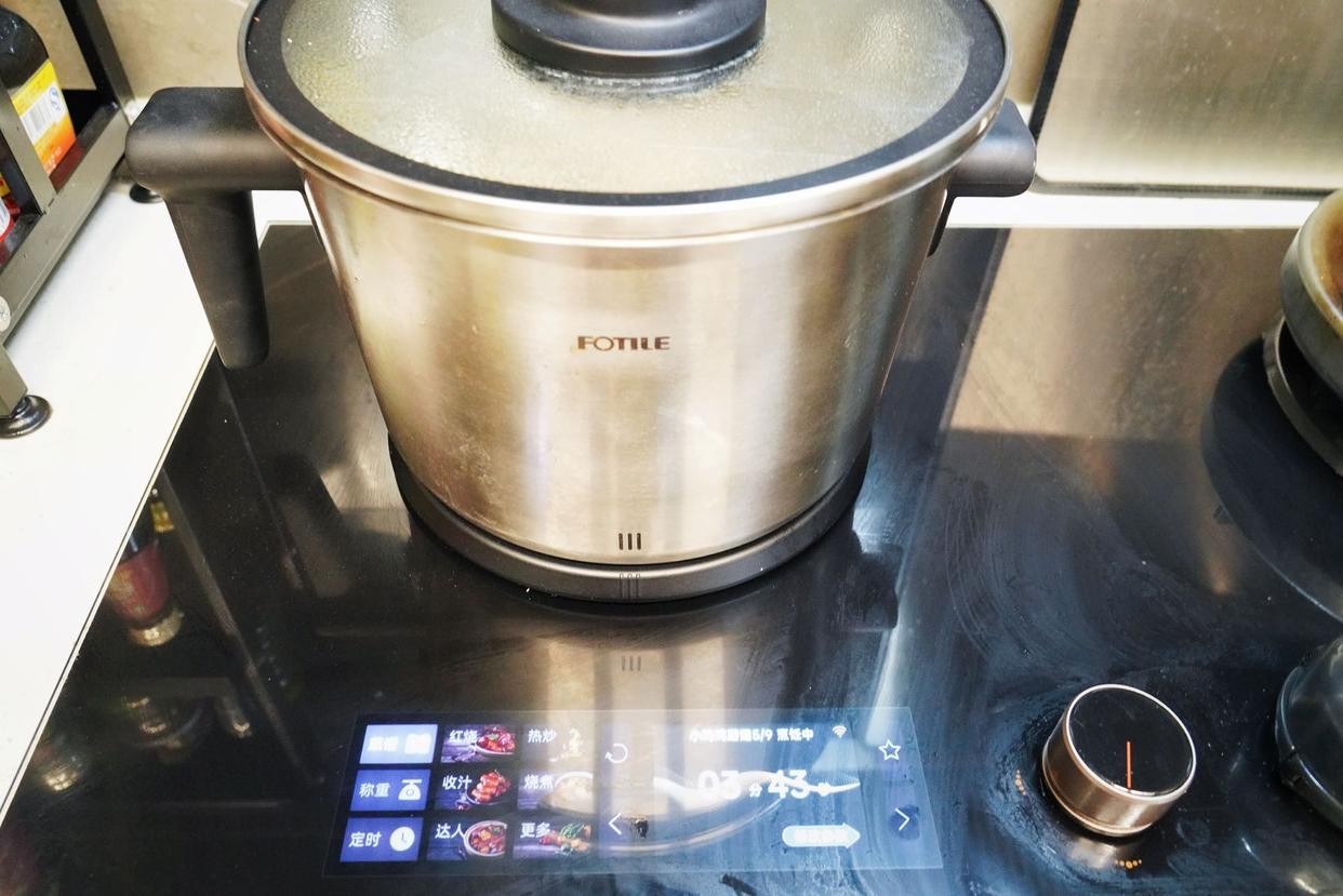 10、盖上锅盖,按炖煮功能键炖煮20分钟