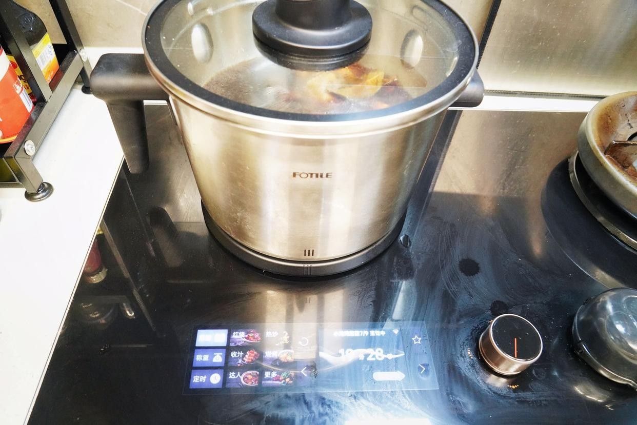 12、盖上锅盖,按炖煮功能键中火炖煮10分钟即可