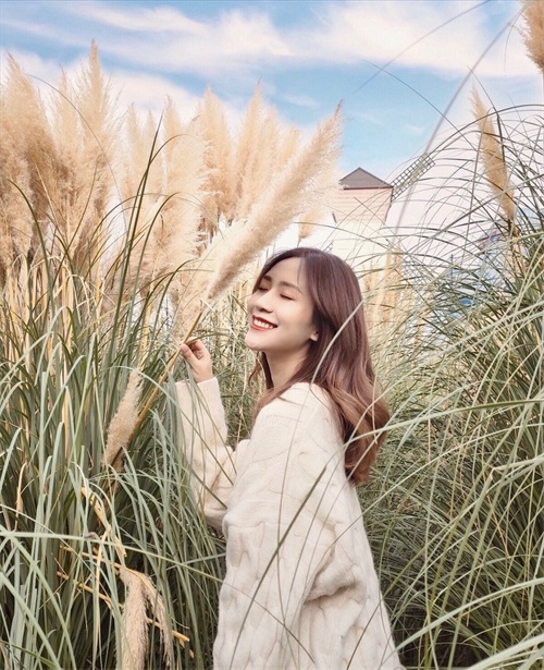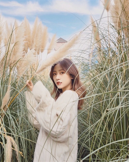 拍照时,和景物合拍,参照下面女生pose,站在杂乱芦苇丛的中间,手拿芦苇闭眼睛,在凌乱的景物中,也能拍得唯美动人,简单自然美。