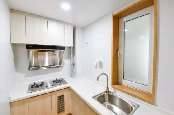 记者在一套一居室内看到,客厅、卧室都做成了方正的格局,灶台、热水器、洗手池等家庭生活的必备用品都已安装到位。“室内均采用装配式装修方式,室内装修一次到位。”据介绍,燕保·百湾家园项目的装配式预制率可达到40%。