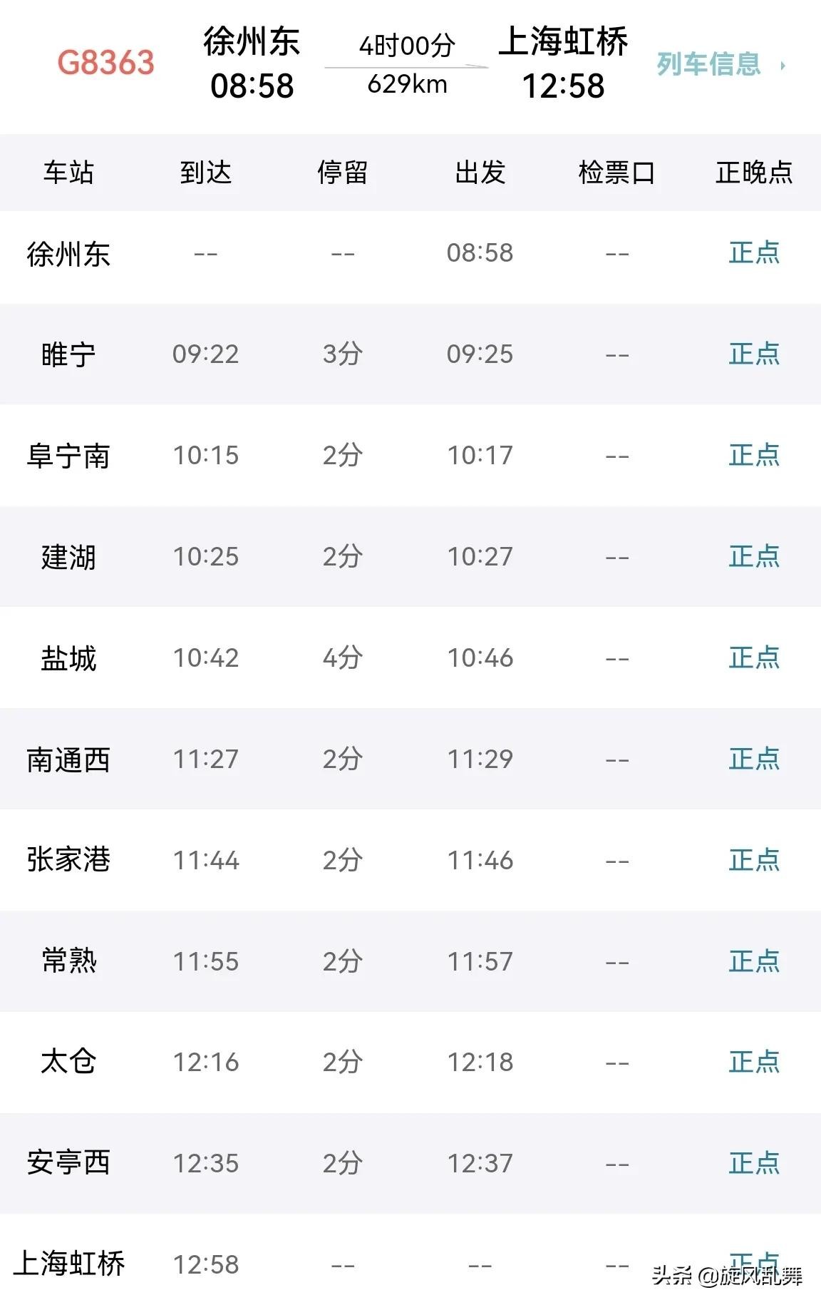 徐州东开往上海虹桥的G8363次列车,增加停靠南通西(11:27~11:29),减去海安。