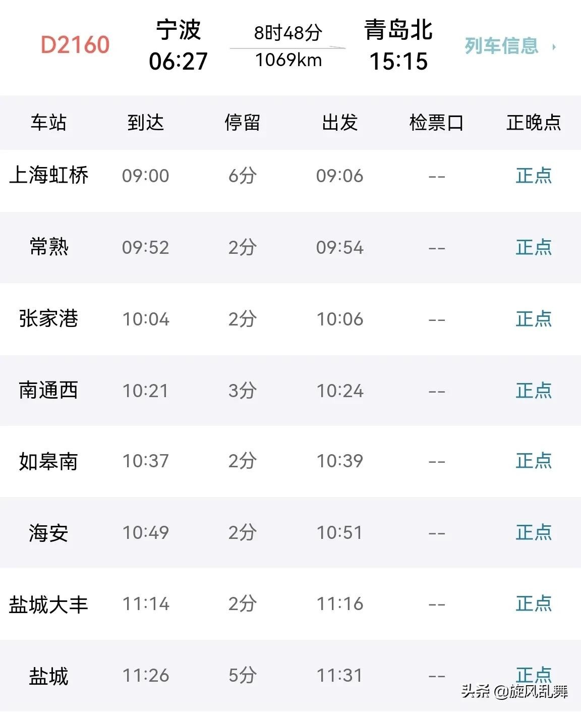 新增宁波开往青岛北D2160次动车,停靠南通西(10:21~10:24)、如皋南、海安。