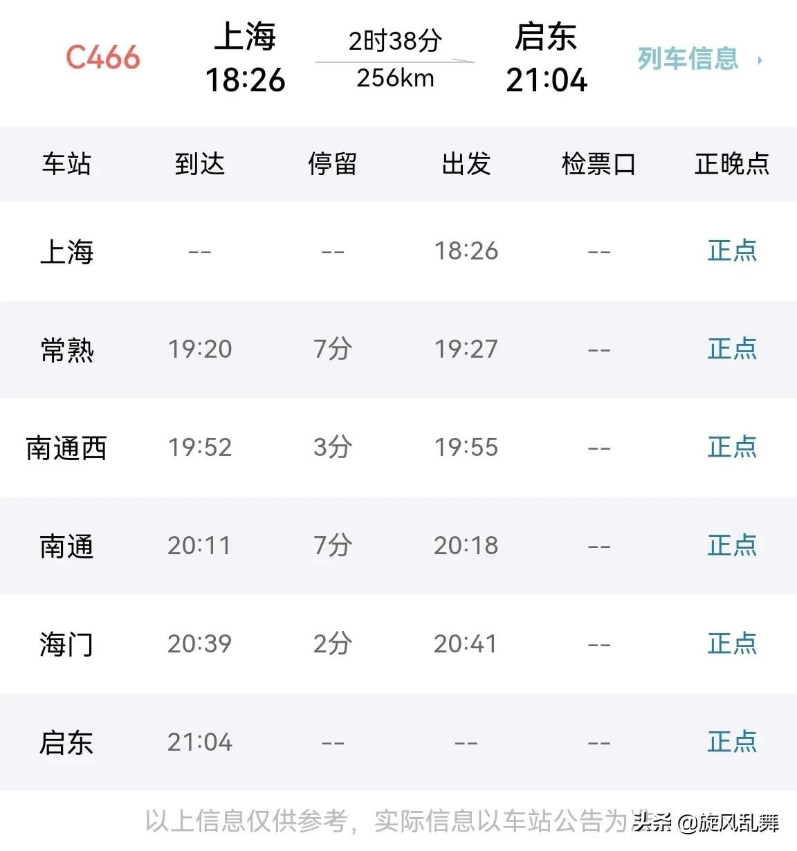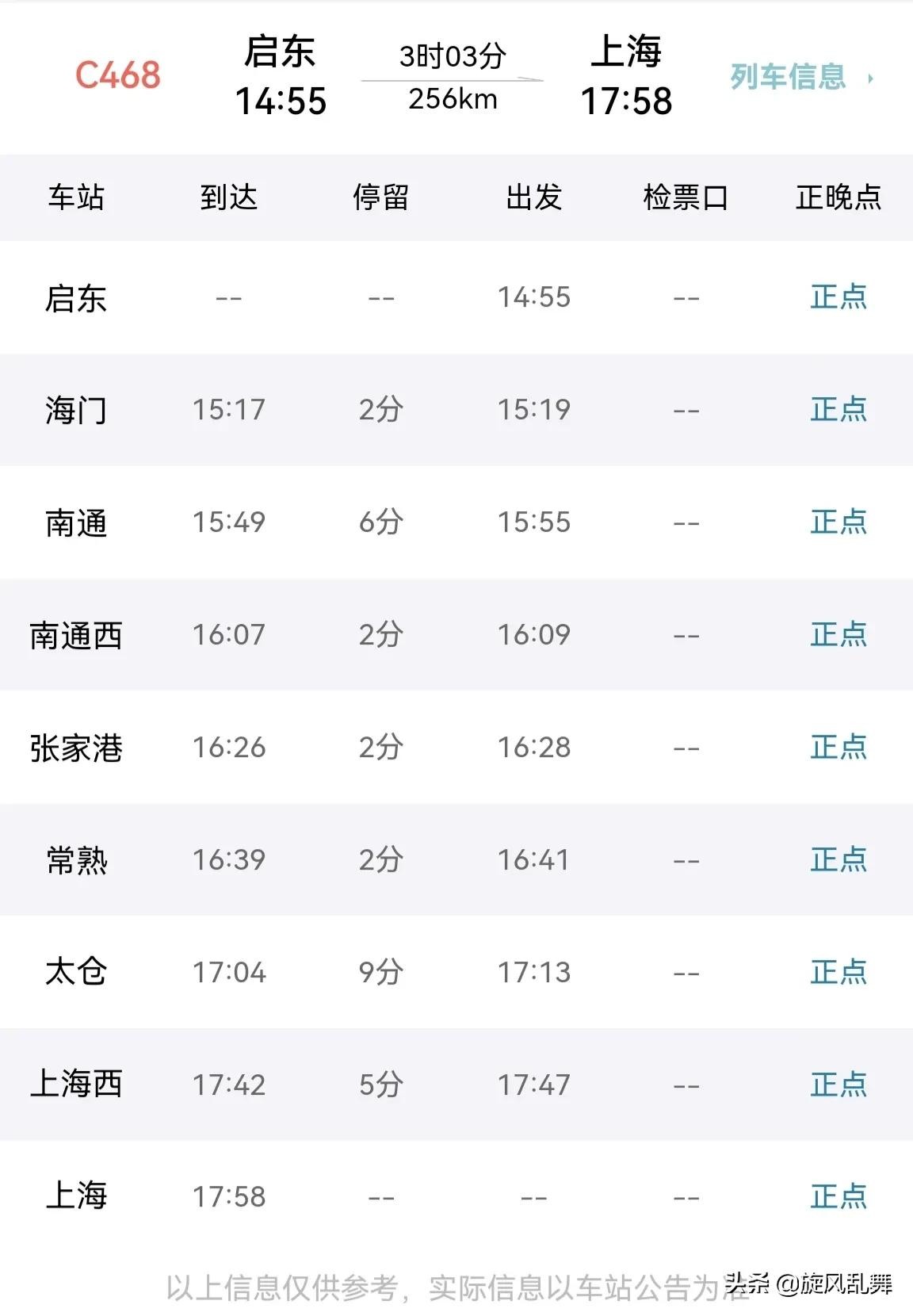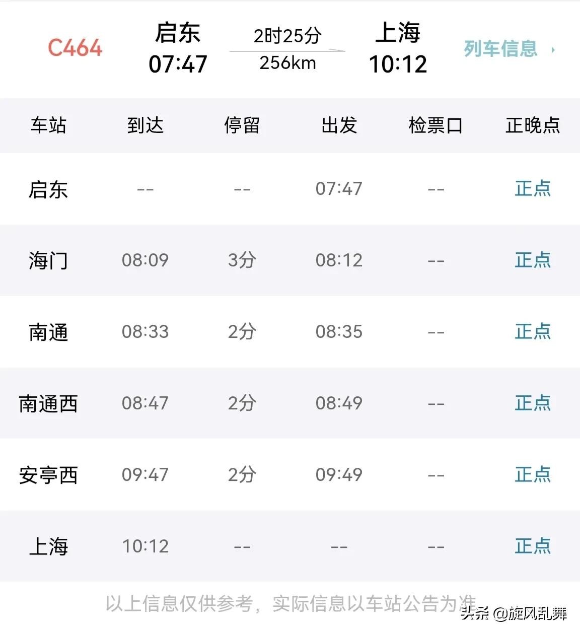 启东开往上海的C464/1次城际列车,增停南通西(08:47~08:49)、减去张家港。