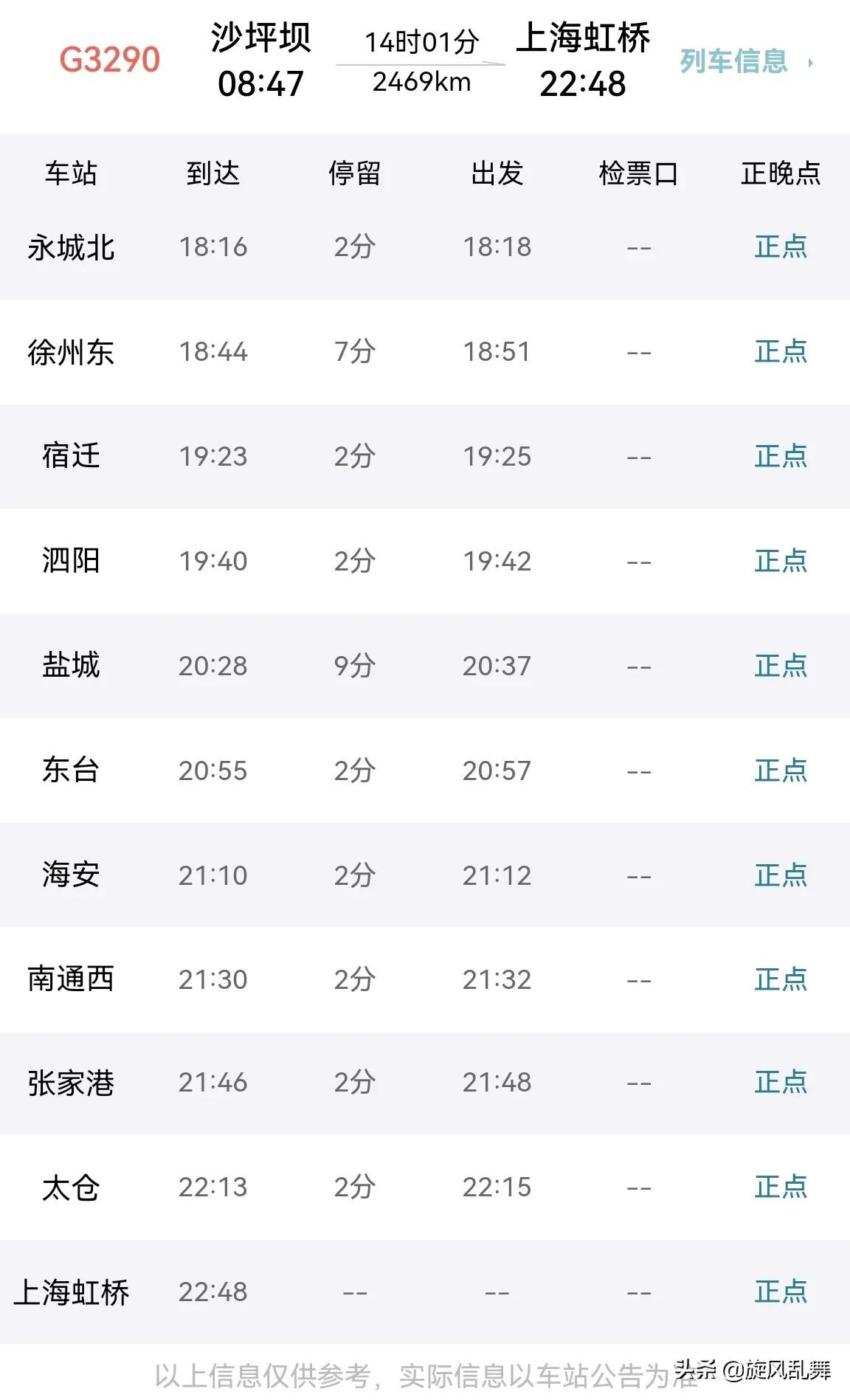 重庆沙坪坝开往上海虹桥的G3290/G3287次列车,增加停靠南通西站(21:30~21:32)。