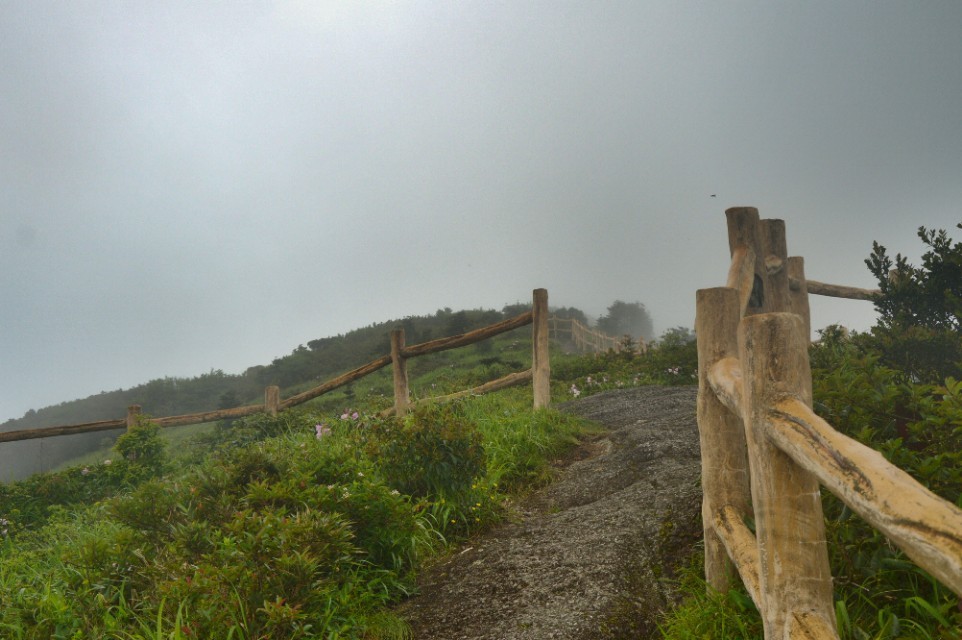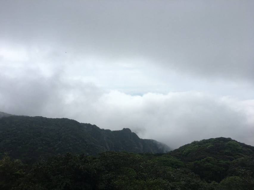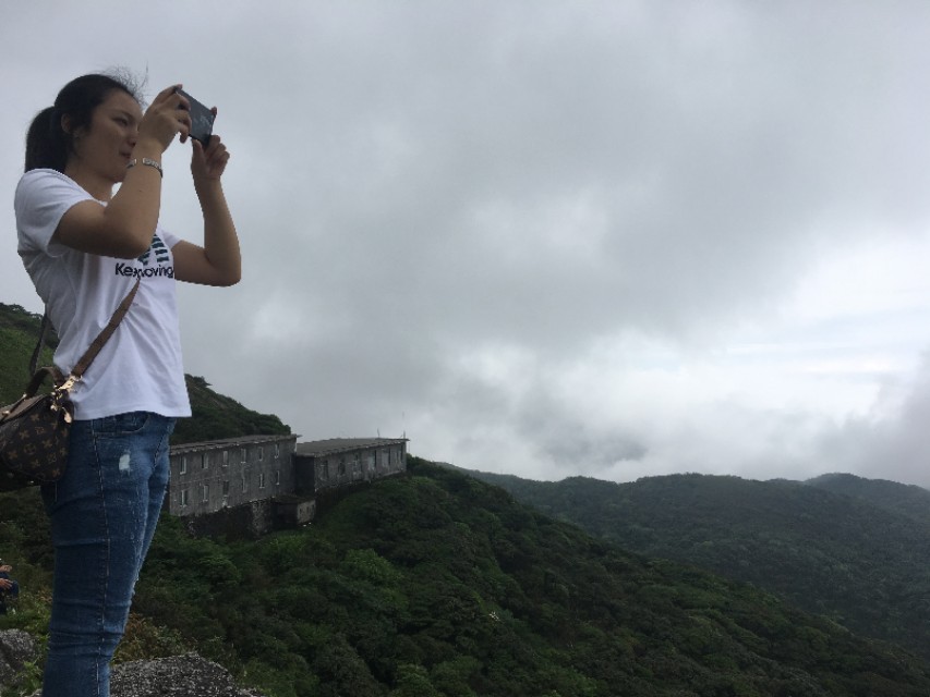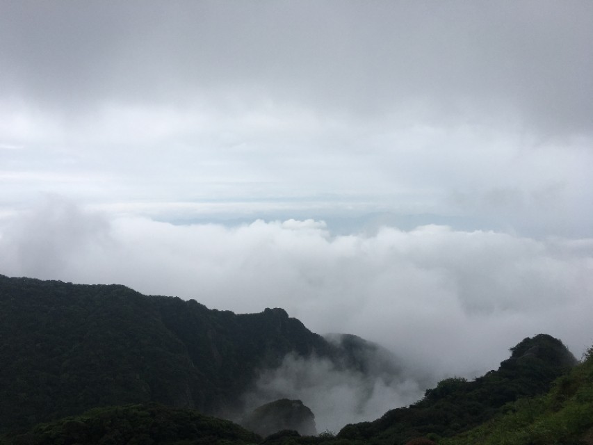感觉我们这次登山的好运气已经用完,刚开始登山的时候天气晴朗,烈日高照,蓝天白云。可是当我们费了九牛二虎之力差不多到山顶时,却突然下起雨来,顿时到处都是雾蒙蒙的,远处的风景根本看不了。可是当我们下山之后,天又突然放晴了……老天爷不带这么玩人的……