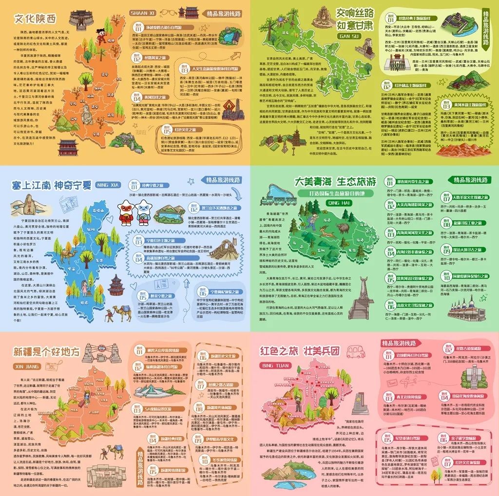 《中国西北游手绘地图》上的各省区(兵团)旅游风采