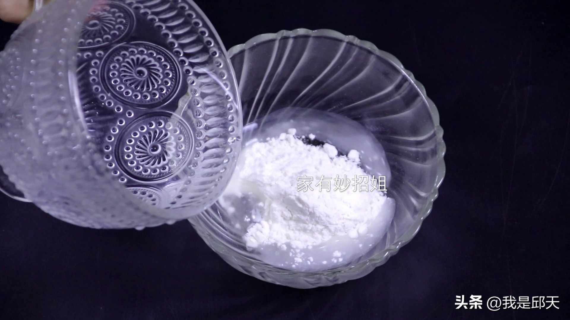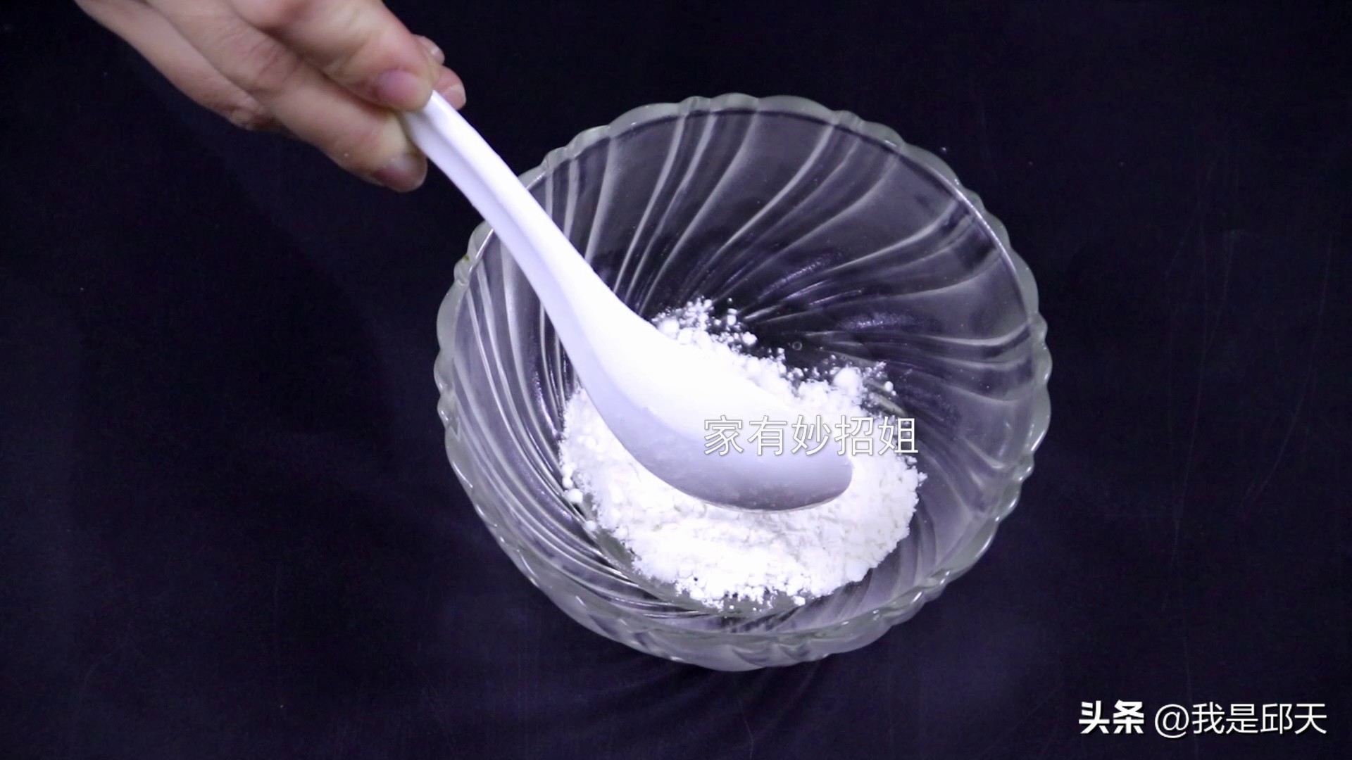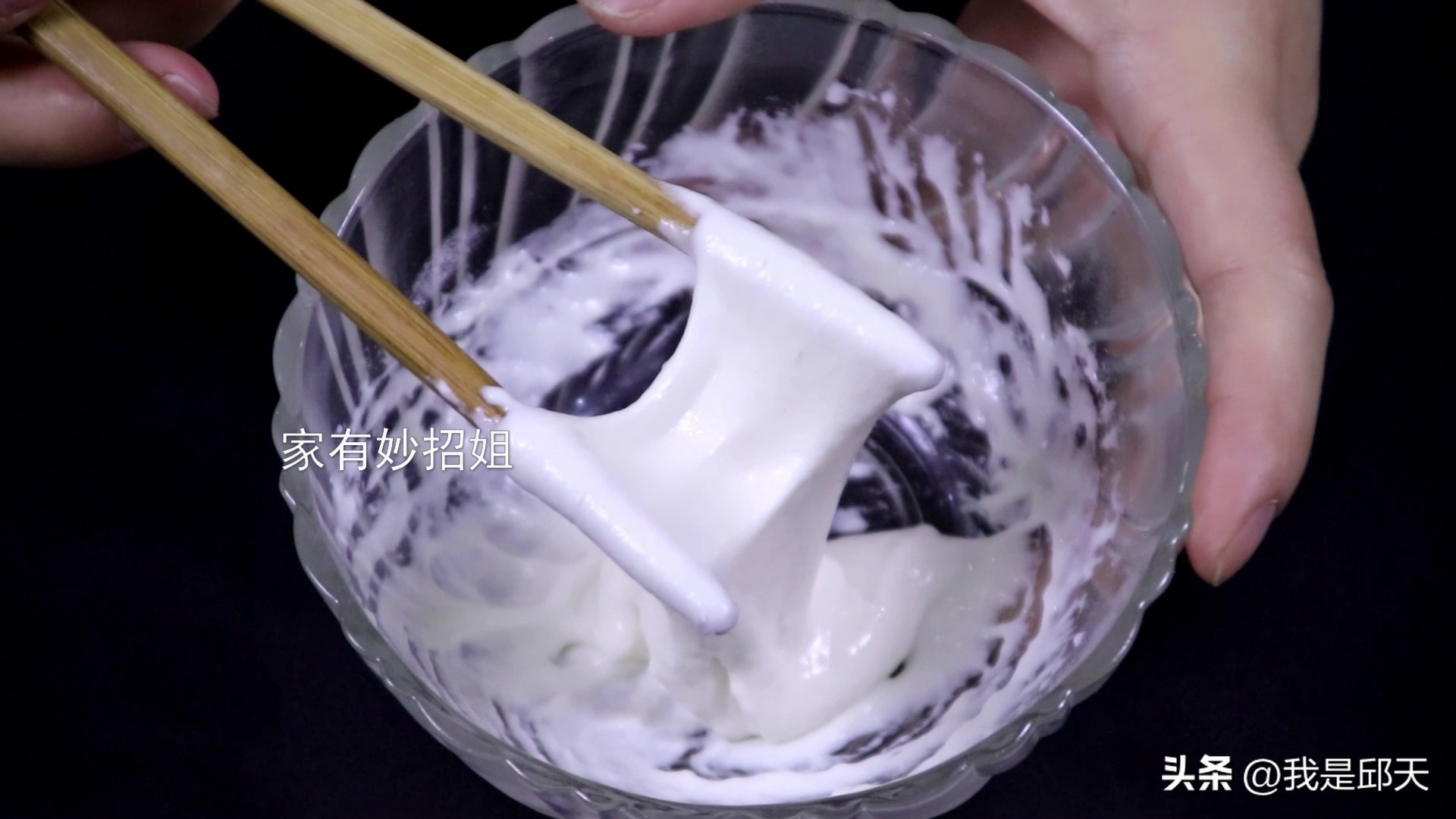 接着,我们在舀上一勺面粉在牙膏和洗洁精里面,面粉被打湿后,同样具有很好的粘性。