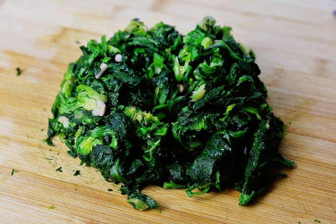 菠菜焯3分钟左右捞出过凉水捏出水分切成段,不要切太碎,揉成团装盘