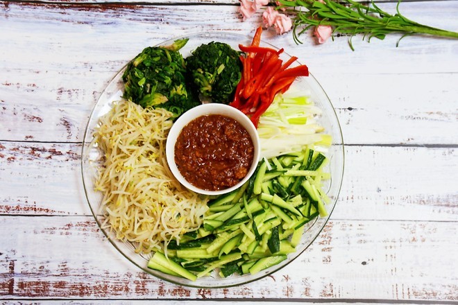东北蘸酱菜是指用黄瓜、生菜、水萝卜作食材,配以尖椒、蒜、小葱等配料制作而出的一道菜。营养省事又爽口。花点时间凹一下造型,约上三两个朋友,又是一次完美的聚餐。当然你首先得学会这样菜如何制作。