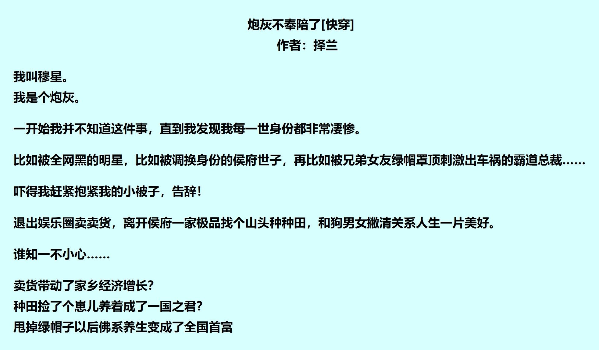 《炮灰不奉陪了[快穿]》 择兰