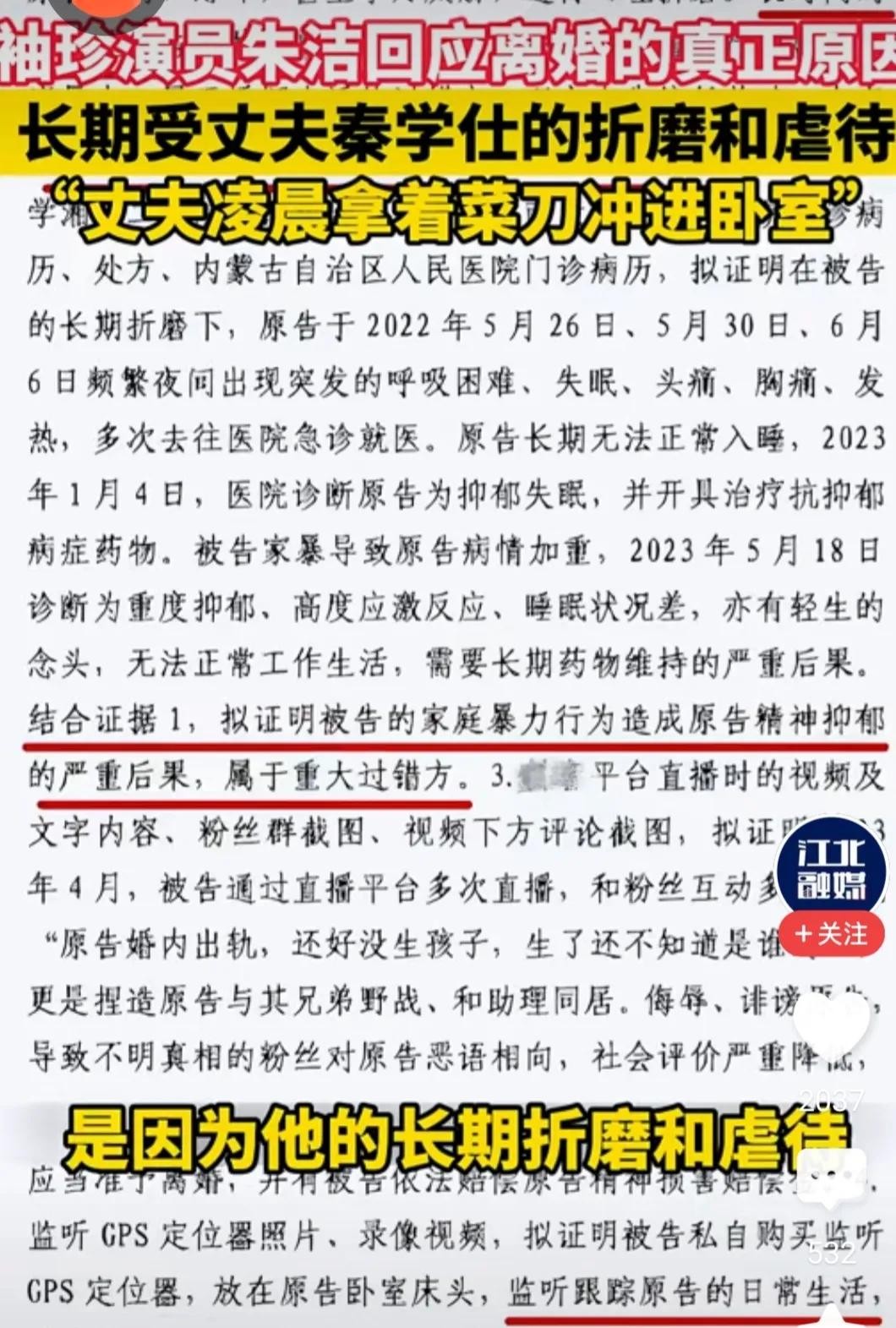 根据朱洁的爆料,真正让她决定结束这段痛苦婚姻的,是一场惊心动魄的深夜事件。她在文中提到,某个凌晨,丈夫秦学仕突然拿着菜刀冲进卧室,这一突如其来的举动让她惊恐万分。尽管没有详细透露当时的具体情况,但可以想象,在这样一种紧张而危险的时刻,朱洁的内心该有多么恐惧。