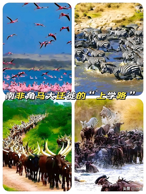 南非人聊起动物大迁徙,笑着说:“角马过河那阵仗,像一群急着上学怕迟到的孩子,不过这‘学校’是对岸水草丰美的草原,老师嘛,就是肚子咕咕叫的抗议声啦!”