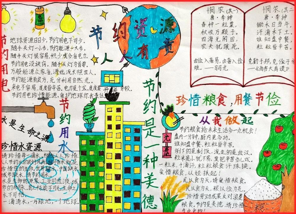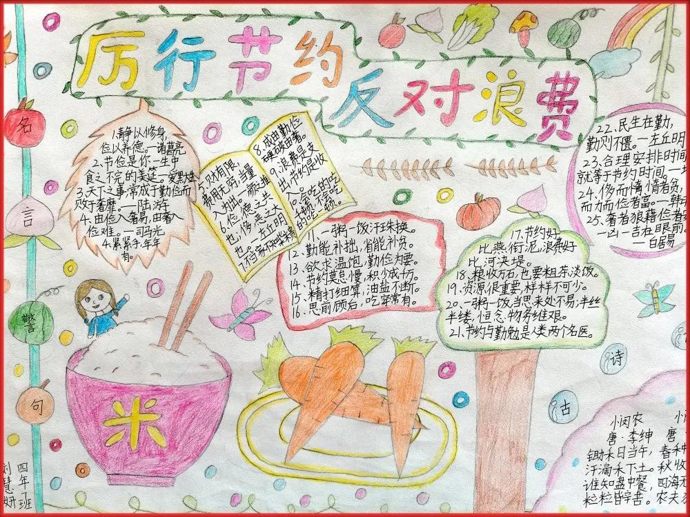 为营造节日氛围,培养师生爱国情感,激发师生参与省级文明县城创建热情,培养师生勤俭节约的生活习惯,进一步丰富学生的课余生活,发挥同学们的聪明才智,提高同学们的动手动脑能力,学校支部与德育处开展四年级“厉行节俭、反对浪费”主题手抄报主题手抄报比赛活动。活动共收到参赛作品96幅。评委组通过对作品主题的把控、画面的布局及书写等方面综合量化,最终评选33幅优秀作品。