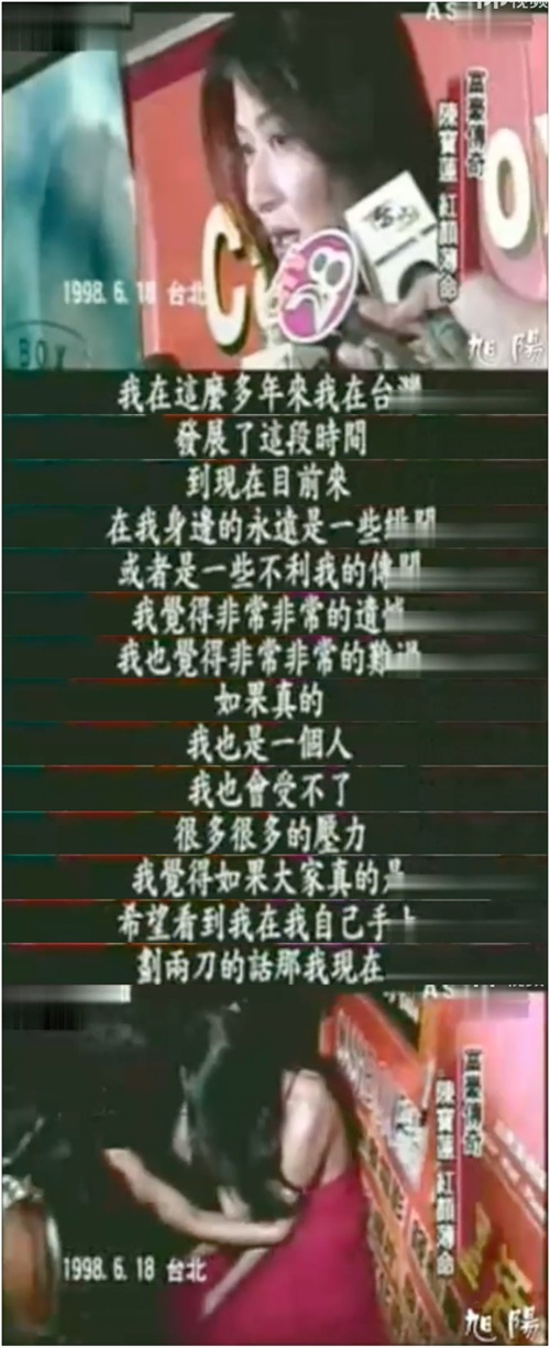 1998年,情绪失控的陈宝莲甚至直接在发布会上掏出随身携带的小刀划向自己的手腕,工作人员冲上台制止了她,发布会和采访被迫中断。