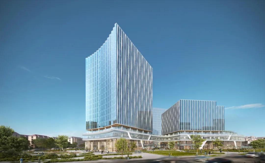 项目由世界知名建筑设计事务所NBBJ领衔设计,外立面采用波光粼粼的曲面幕墙设计,建筑风格独具一格。