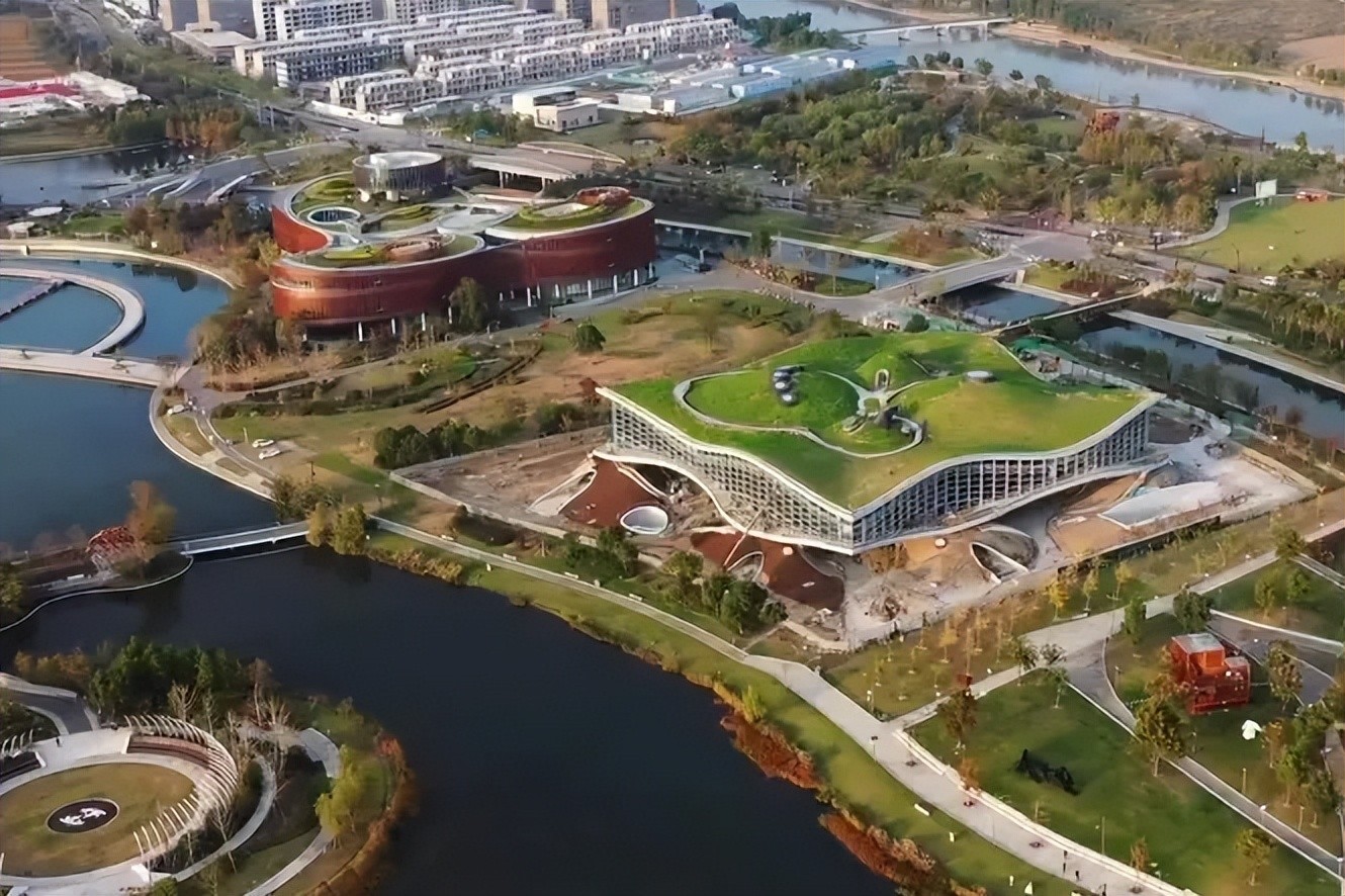 不仅打造了云上草原、迷你山丘等特色场景,底部还有八座隆起的绿丘和环湖绿带,外围一整圈玻璃幕墙更是连绵起伏,远远望去,酷似漂浮在半空的“云朵”。