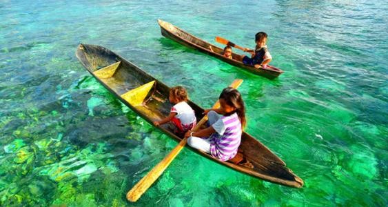 巴瑶族的孩子们从小就在海浪的摇篮中长大。对他们来说学习游泳和潜水就像陆地上的孩子学习走路一样自然。