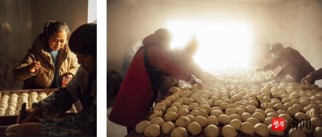 河南新乡的团队成员姚梓聪记录下大年初一的独特年俗:不用利器、不扫地、不洗头,寓意“守财纳福”,此外“qiong起去窜门”(早起去走亲戚)则是必须做的。在重庆璧山,团队成员徐晓峰记录了当地“偷青”习俗——孩子们在除夕夜悄悄摘取青菜、萝卜,以“偷青”谐音“彩头”,寄托新年祈愿。江苏如皋蒸馒头的年俗年味则被成员沈昳涵用镜头定格,“一恁顾到忒,恁勤租牟忒”(一年过到头,年前做馒头),热腾腾的馒头寓意着来年又是一个蒸蒸日上的好年。