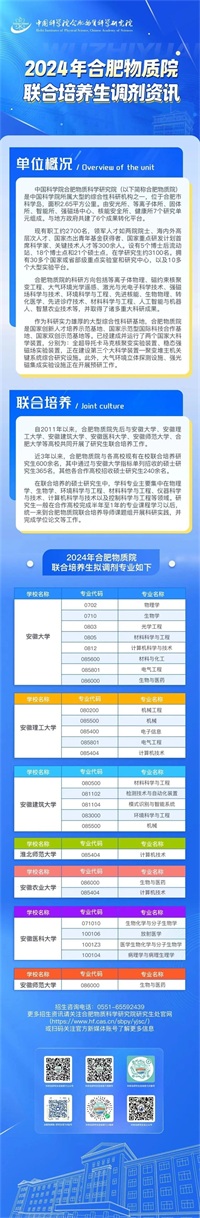 2024年中国科学院合肥物质科学研究院高校联合培养硕士调剂资讯
