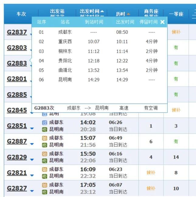 从昆明到成都不管从成贵高铁线还是绕重庆哪怕走了渝贵快铁到贵阳,因为走了沪昆贵阳段到昆明,车次都是G。
