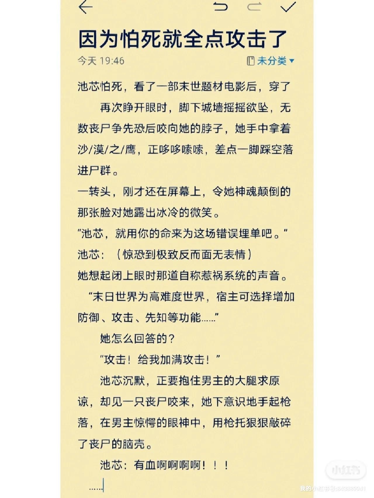 前期男女主生存逃离小镇写得是真细腻啊,很现实,没有说女主就要救下很多人,没有说和女主在一起的人就一定安全,只是想活下去的人活的机率大一些,也只是有机率而已,人性写得好现实,后期就开始放飞了,但是也是在线的。