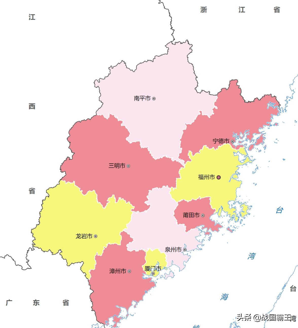北宋时期,置福建路,行政区划为福、建、泉、漳、汀、南剑六州及邵武、兴化二军,共计8个,故福建号称八闽。