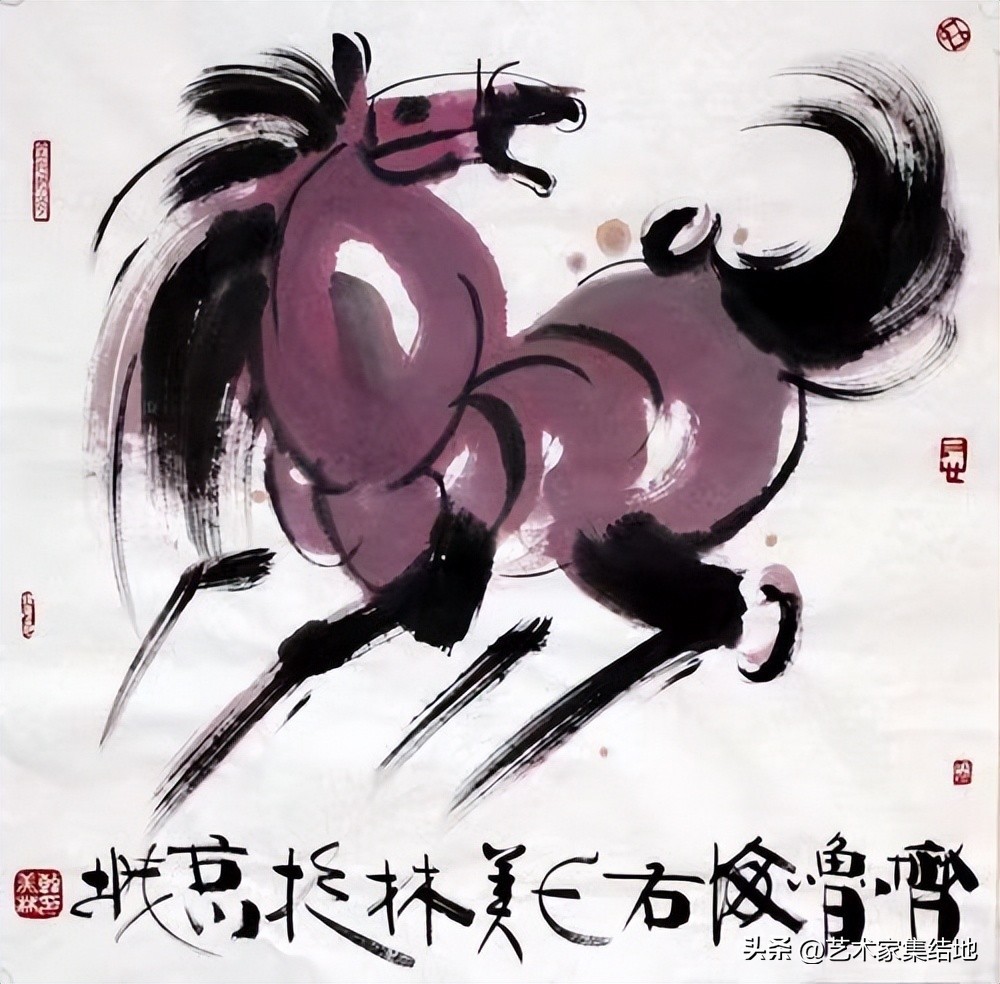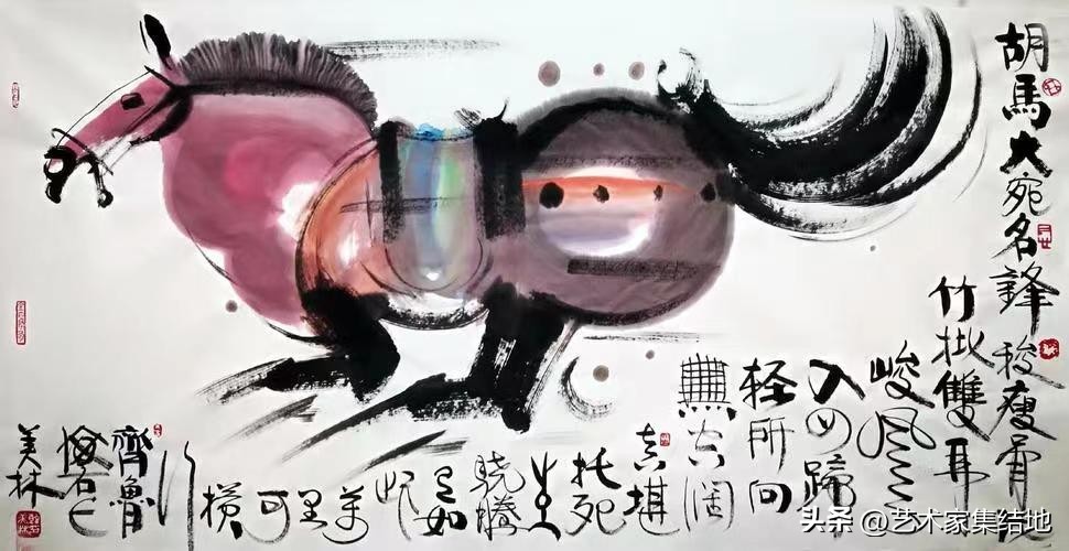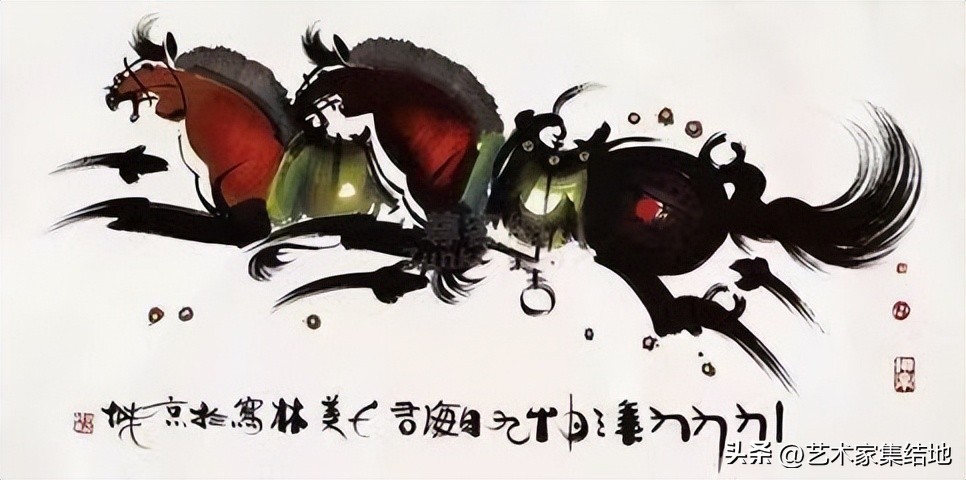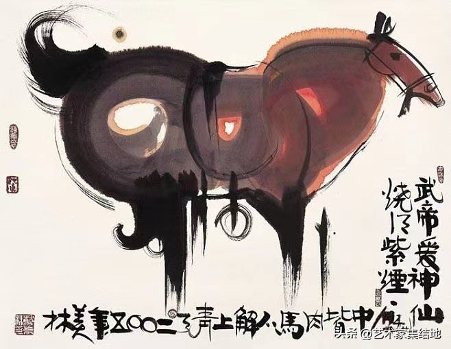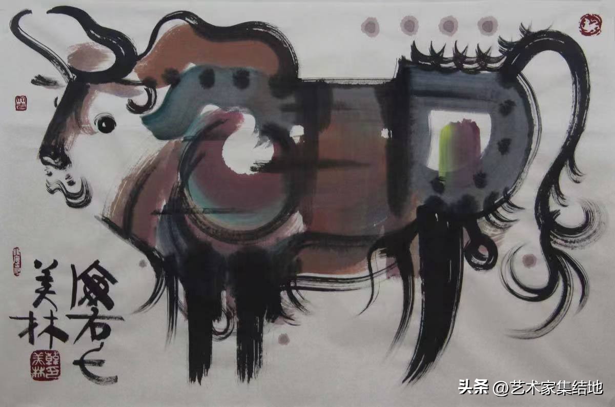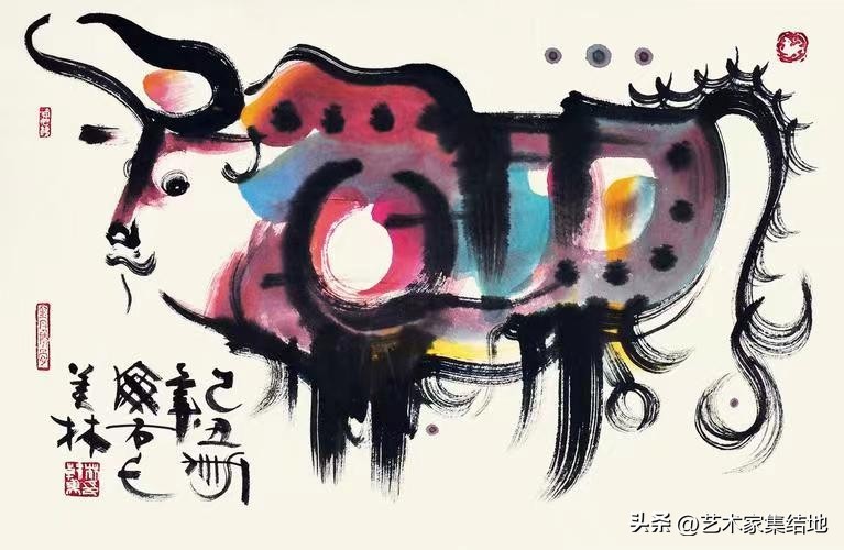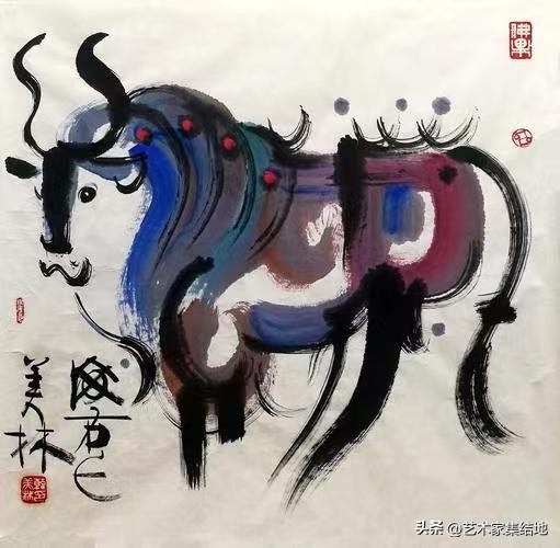 在绘画方面,韩美林的作品以其独特的笔墨和色彩而著称。他的画作常常以自然景物和人物为主题,通过丰富的笔墨和色彩变化,表现出生动的自然景象和人物情感。他的绘画风格既有绘画的韵味,也有现代艺术的独特风格,给人一种耳目一新的感觉。