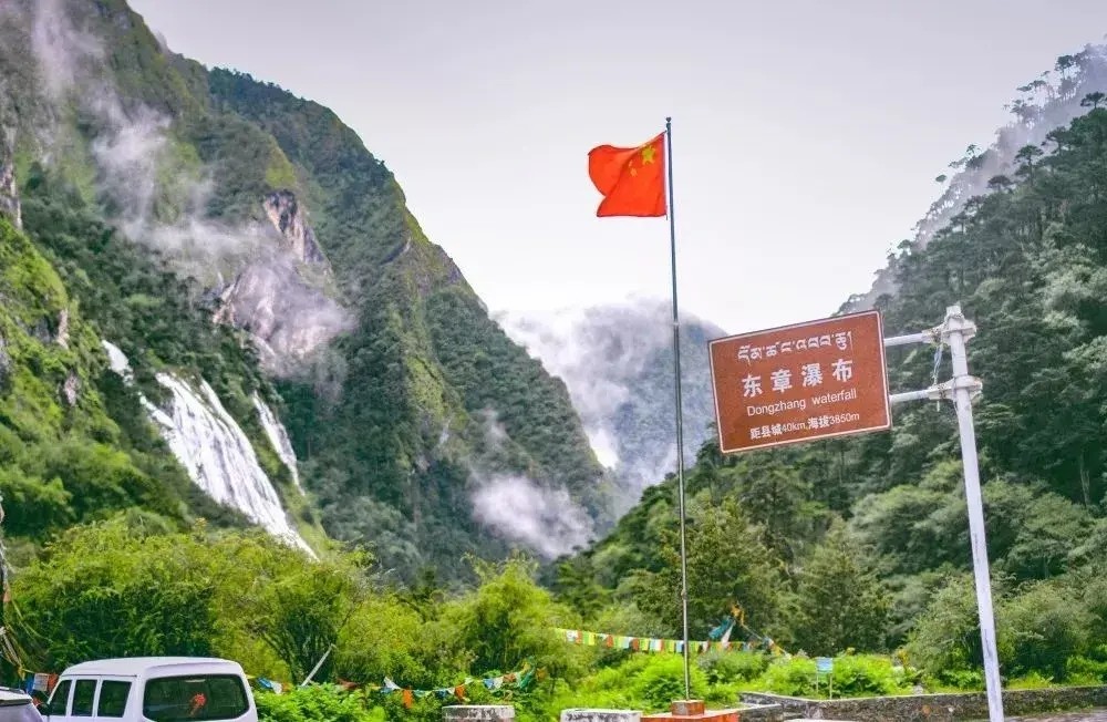 我国东章瀑布指示牌